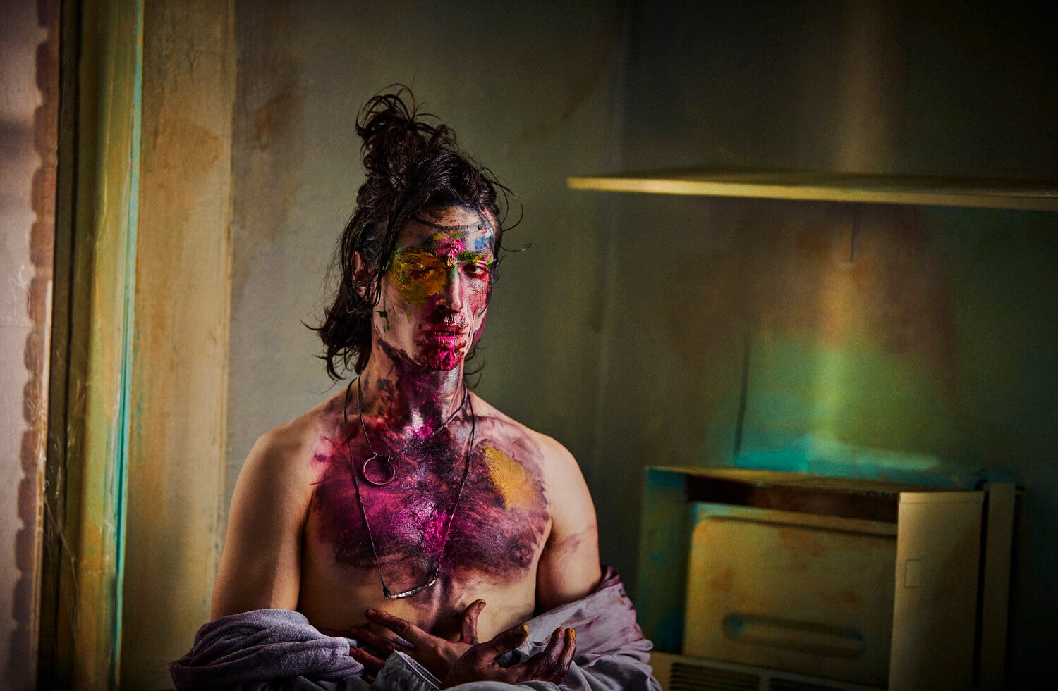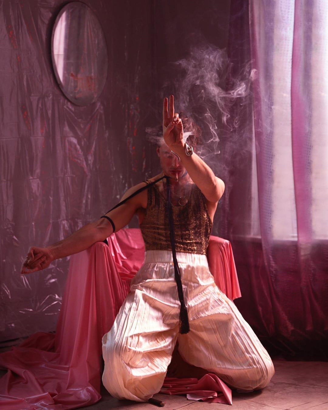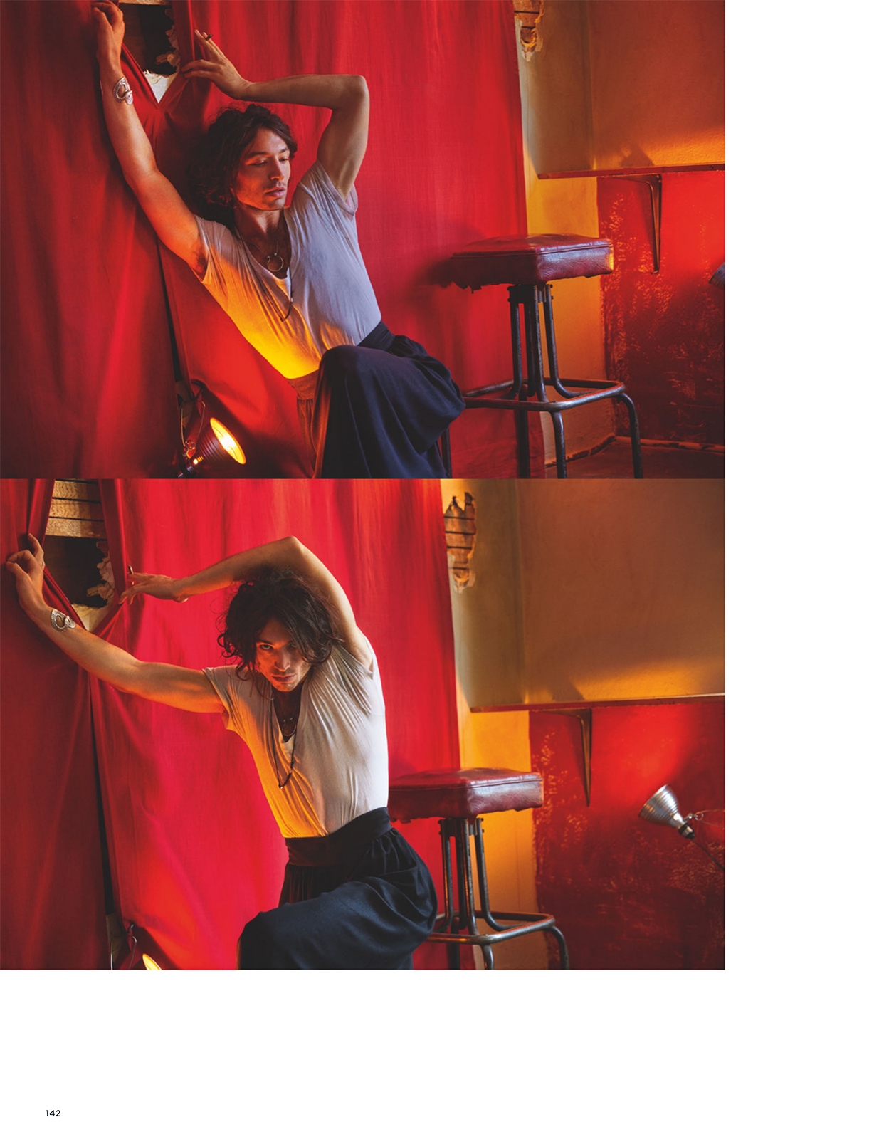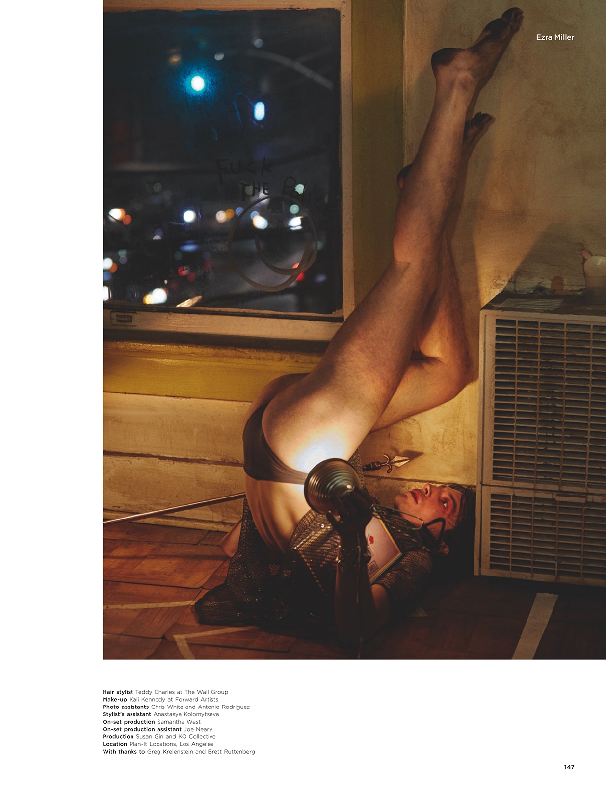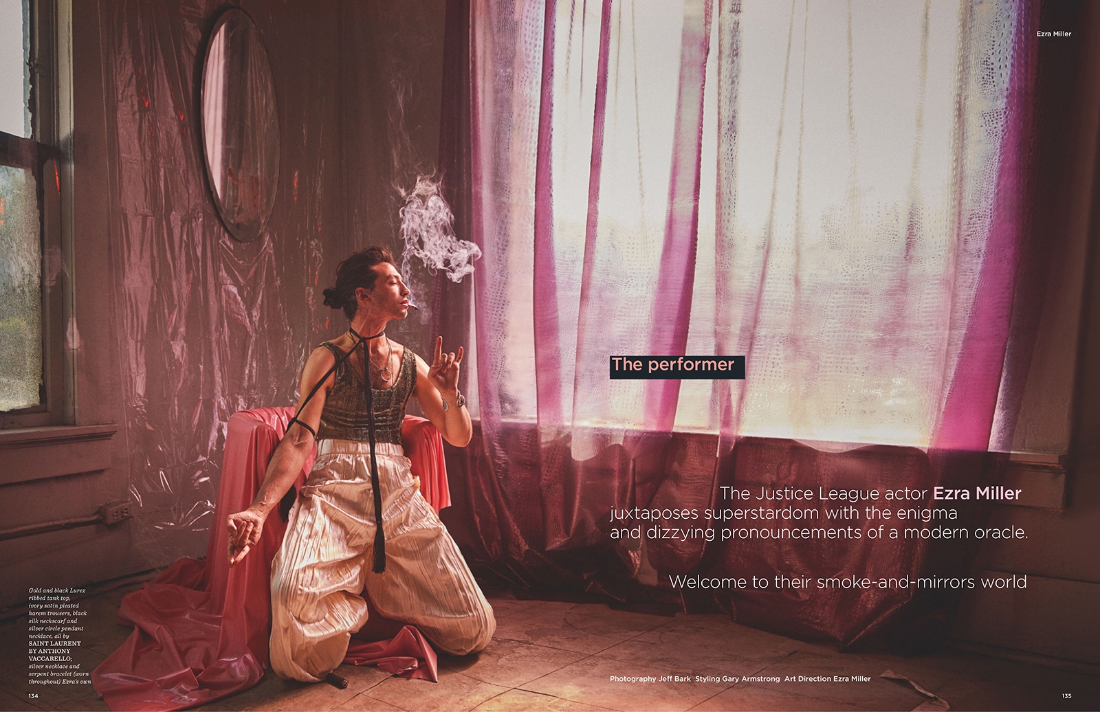 “The performer” is the title of this cover story featuring American actor Ezra Miller groomed by Teddy Charles & Kali Kennedy, styled by Gary Armstrong and shot in an empty hotel of DTLA by Jeff Bark for the current issue of GQ Style UK.