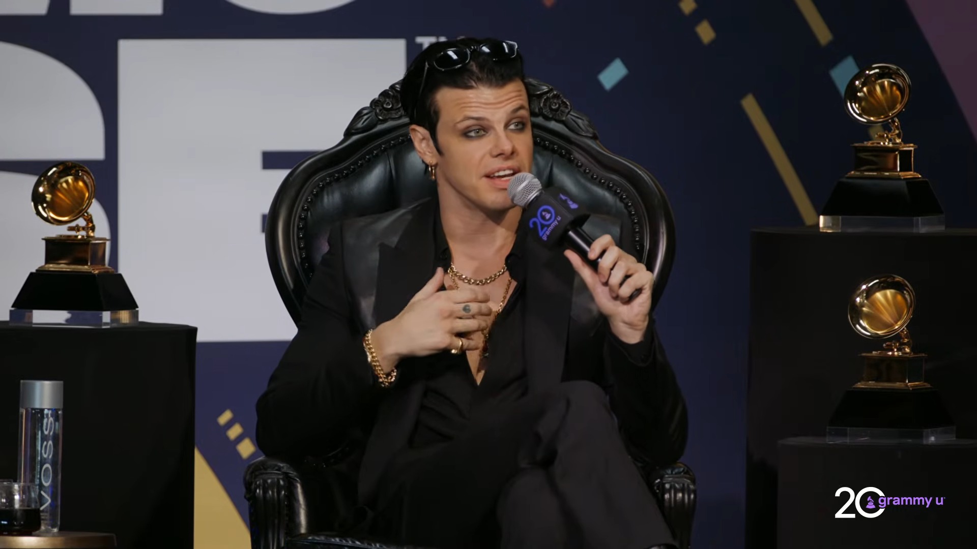 YUNGBLUD speaks on stage during a GRAMMY U interview in 2026, seated in a black armchair and holding a microphone beside GRAMMY trophies. YUNGBLUD speaks on stage during a GRAMMY U interview in 2026, seated in a black armchair and holding a microphone beside GRAMMY trophies.