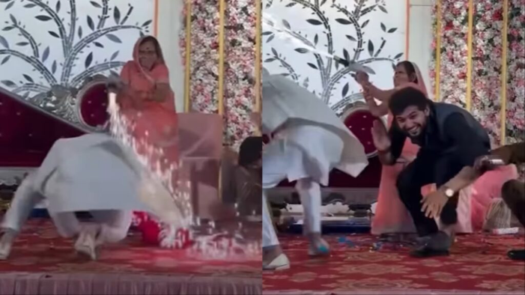 Grandma was filmed at grandon’s wedding unleashing Chaos with pyro gun.