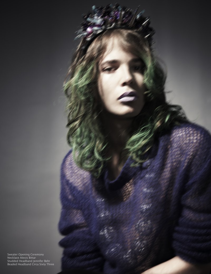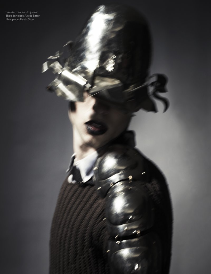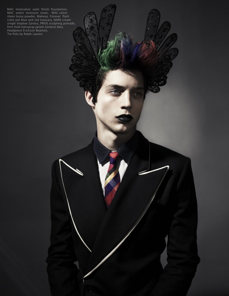 ‘Photographer Jason Mickle and stylist Jessica Bobince come together for another Un-Titled feature. Over the past and looking to the future, makeup by Aya Komatsu and hair by Taeko Inoue jettison Grayson Vaughn, Aris Schwabe, Jacob Dekat and Romain (Request) into a rebellious world of elaborate accessories and unexpected beauty.’ – Courtesy of thefashionisto.com