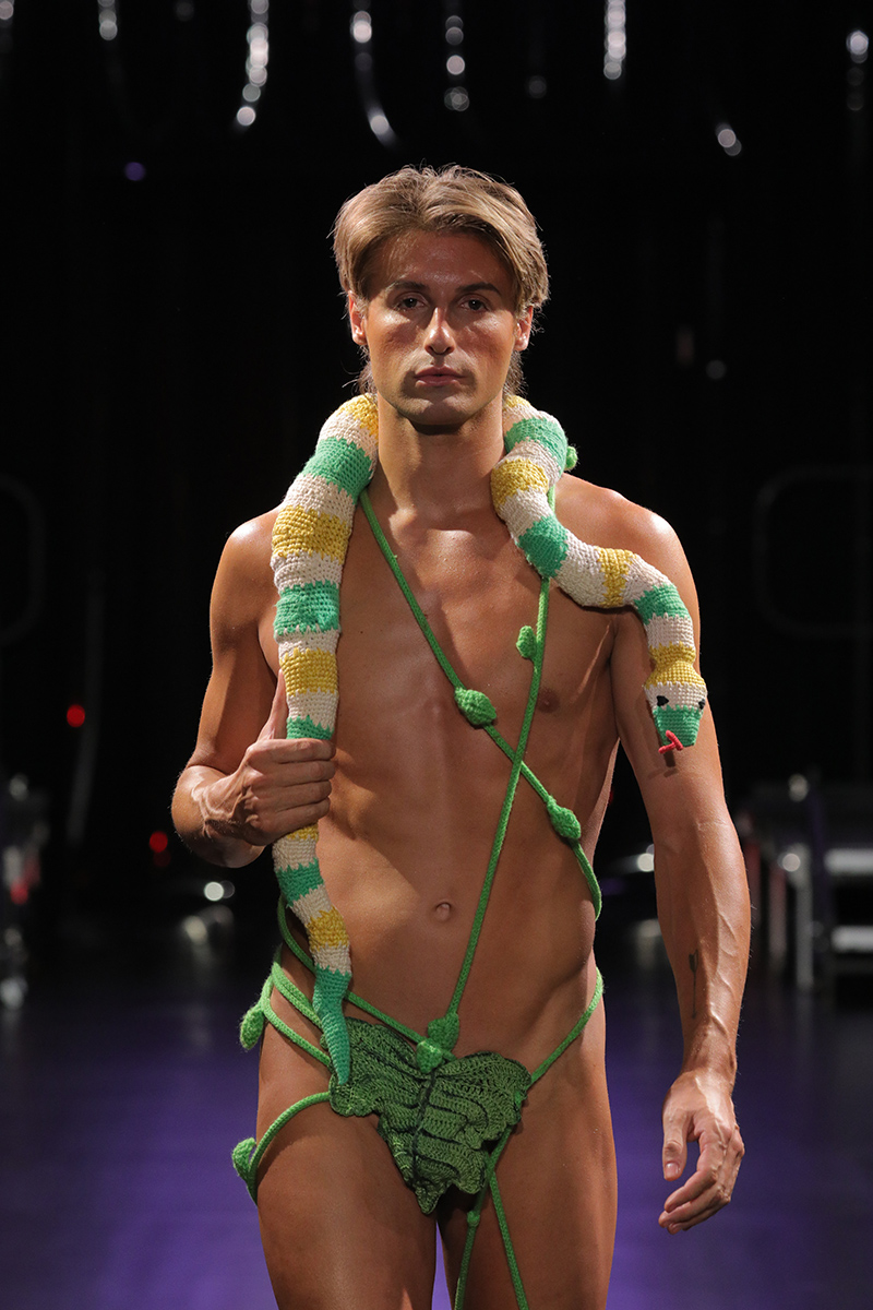 The collection is camp yet quaint and sexy. Thread pieces that are gay-oriented but not exclusive. Designed by Michael Schmidt.