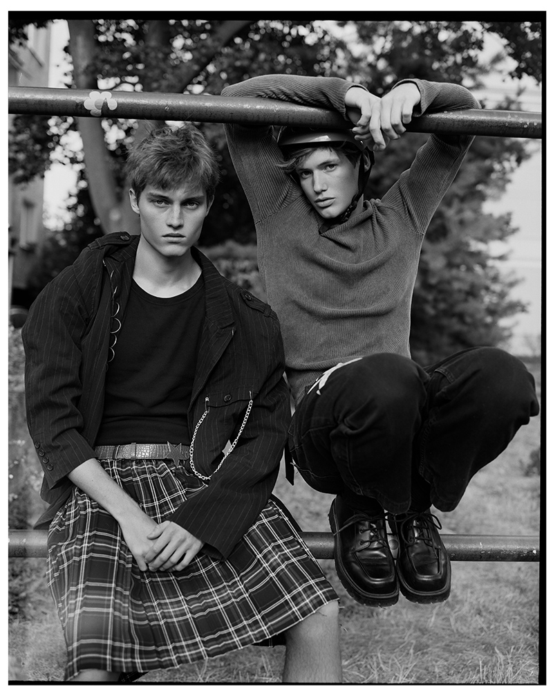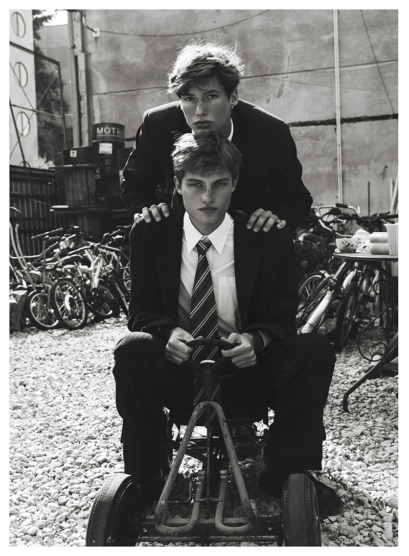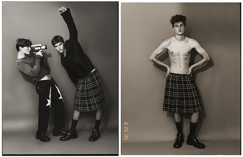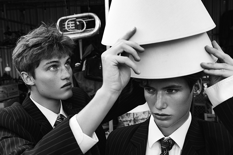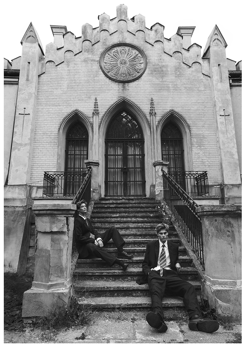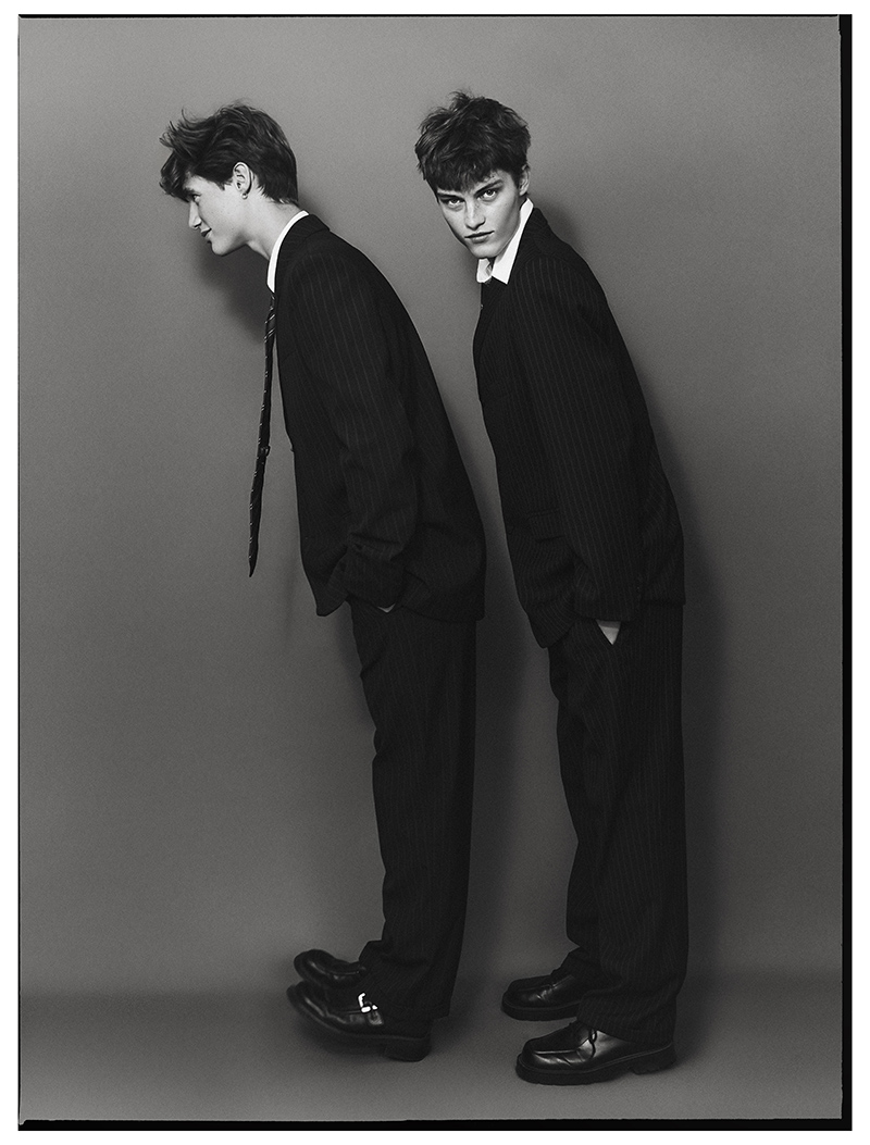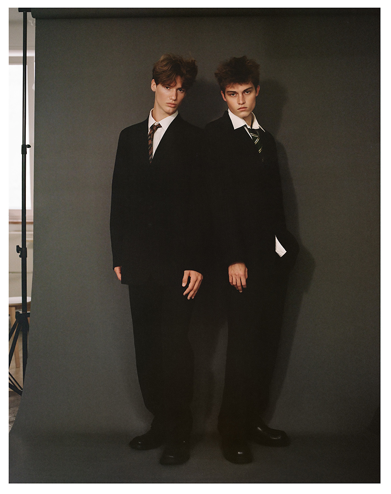 Shot by Arthur Iskandarov for FY Magazine! Online, the spread features Dominik Datko and Maciej Poplonyk in a Halloween-esque model play that’s equal parts eerie and elegant. Expect moody lighting, sharp silhouettes, and a playful nod to the season’s darker aesthetic—all wrapped in editorial finesse.