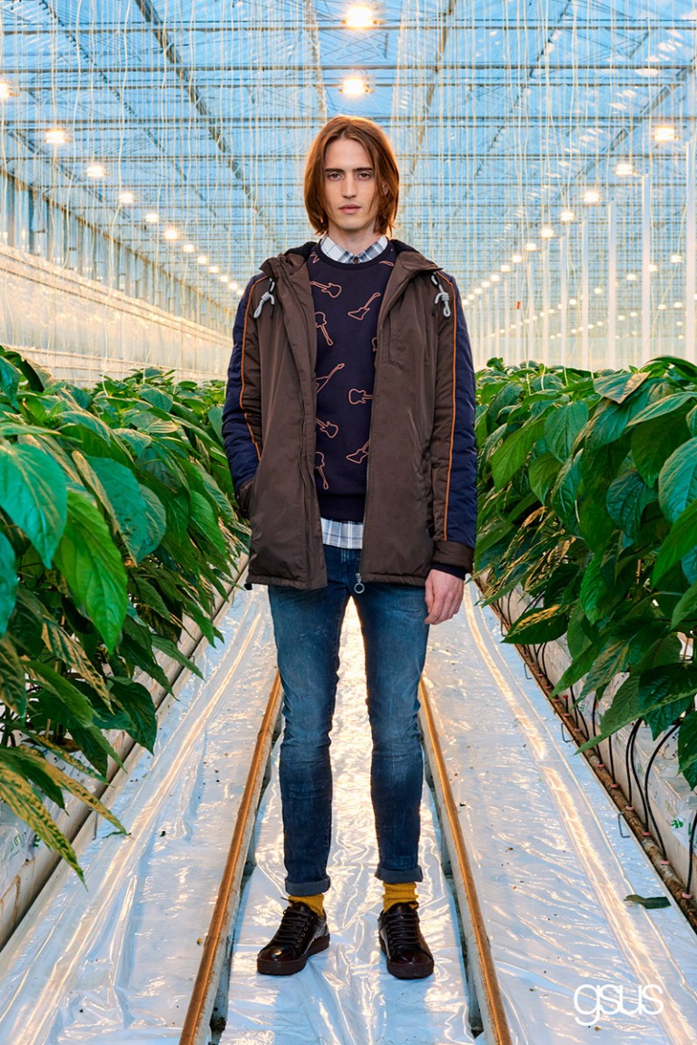“gsus presents their new lookbook for Fall/Winter 2016. Captured in a typical dutch glass house, it features model Sam Lammar shot by Jasper Abels.” – FY Magazine.es