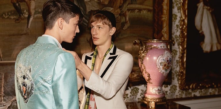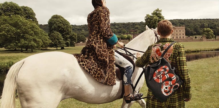 “First look: the Gucci Cruise 2017 campaign, set in the grounds and interior of Chatsworth, captures a cast of eclectic characters alongside acclaimed actress Vanessa Redgrave.” – FY Magazine.es