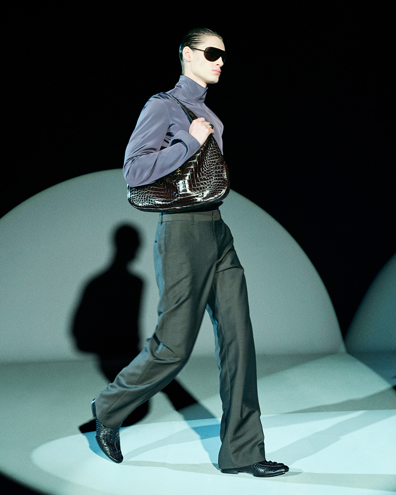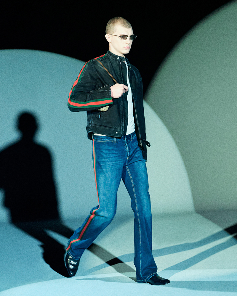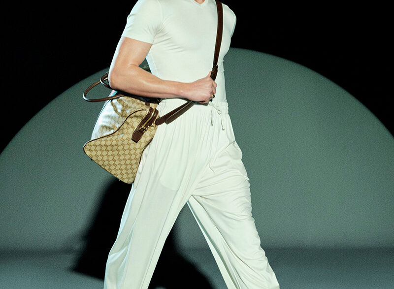 The lookbook features lightweight tailoring in silk faille, deliberately worn textures, and jackets that close with sleek metal clasps. Gucci’s signatures — GG monogram, Web stripes, and archival motifs — are reinterpreted with Demna’s oblique, conceptual gaze.