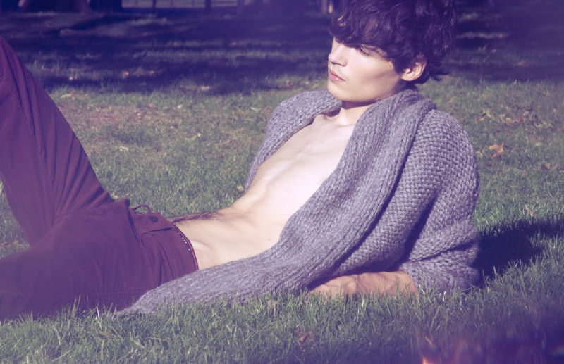 DNA model Guntars Asmanis heads to the park for a day of shooting with photographer Darroch Putnam. Captured in a dreamy haze, Guntars is outfitted by Evan Kalman. Courtesy of – Homotography