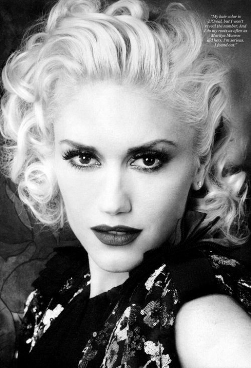 On her hair… “My hair color is L’Oreal, but I won’t reveal the number. And I do my roots as often as Marilyn Monroe did hers. I’m serious. I found out…You know, I was a redhead once. Right after we came home from the first No Doubt tour I felt like I might get recognized, so I colored my hair red. And I hated it.”