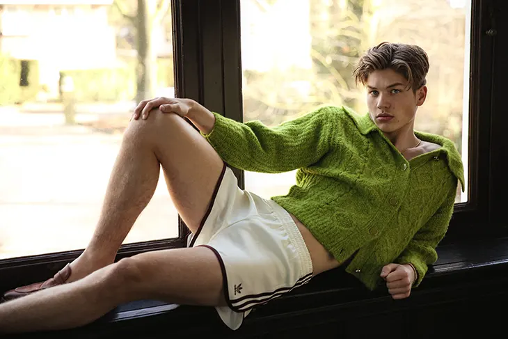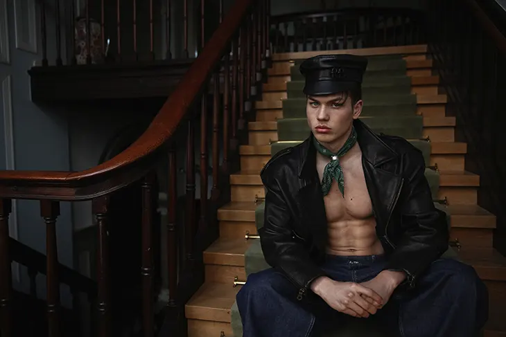 moldering, alluring model Hessel de Jong — exceptionally handsome with that unmistakable boyish gleam — fronts the latest MMSCENE STYLE STORIES feature. His presence is a striking blend of softness and edge, giving the editorial a magnetic, modern‑classic pull.