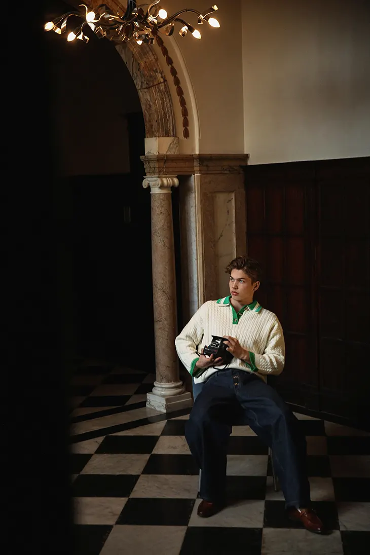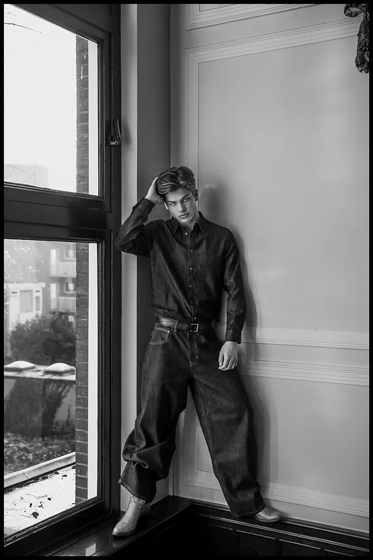 Shot by Martijn Smouter, the series leans into clean lines, intimate framing, and a crisp visual mood that highlights Hessel’s sculpted features and effortless charm. It’s the kind of portrait work that feels both editorial and personal, capturing a rising face in a way that feels fresh and quietly cinematic.