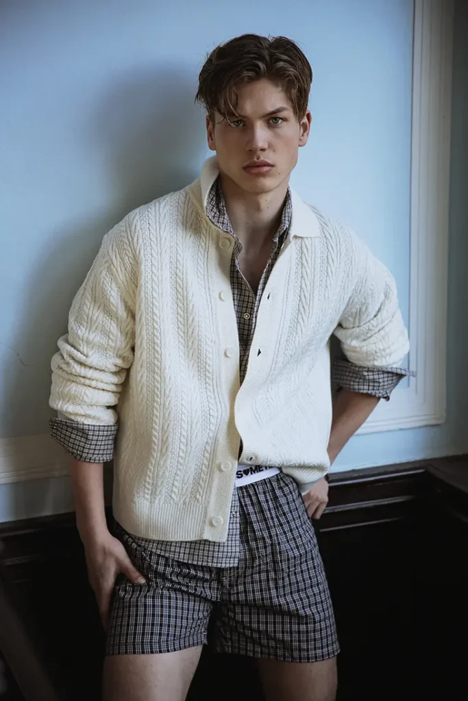 The mood is sleek and unfussy: muted knits, crisp layers, and polished grooming that keep the whole thing modern, masculine, and quietly magnetic.