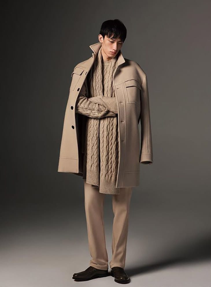 Exploring unique aesthetic perspectives, reimagined abstract patterns and elegant colour tones, it reflects the modernity of the fashionable urban man.” – From Erdos.” – Malemodelscene.net