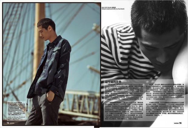 “Top model Hao Yun Xiang stars in the cover story for Newicon for Him Magazine‘s June July 2015 edition captured by fashion photographer Danny Lim with styling from Jungle Lin. Grooming is courtesy of Kento Utsubo with hair styling by Yuhi Kim. Assistance by Niki Asti & Yesenia.” – FY Magazine.es