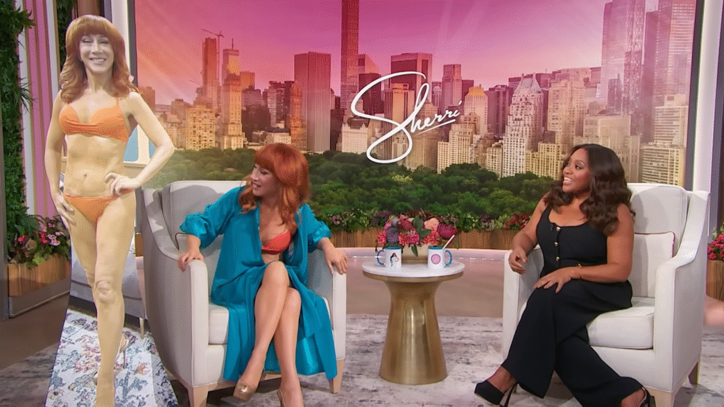 Griffin strutted onto set in a bright red bikini, serving full comedic glam with zero apologies. (ICYMI: Kathy’s been leaning into body confidence and post-cancel comeback energy since her 2023 stand-up run.)