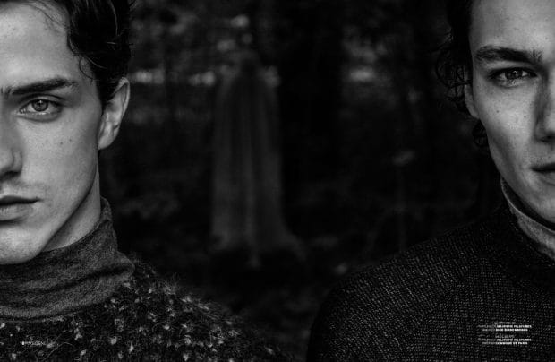 For the session models are wearing selected pieces from The Kooples, Dior Homme, J.M Weston, Vivienne Westwood, Issey Miyake, Diesel Black Gold, Versace, COS, Gucci, Garçons Infidèles, Tiger of Sweden, Christian Louboutin, Paul & Joe, Rochas, Majestic Filatures, Dirk Bikkembergs, Commune de Paris, and Pete Sorensen.” – Malemodelscene.net