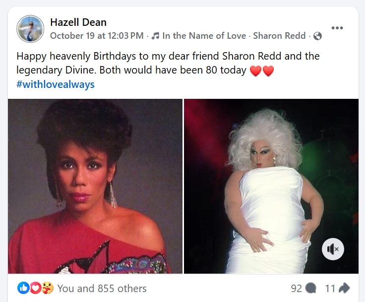 Hi-NRG legend Hazell Dean celebrates her friends this week—and what friends to have! Sharon Redd and Divine weren’t just icons of music and performance, they were personal inspirations and cherished companions.