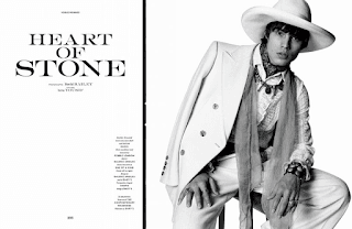 “Vogue Hommes Paris references The Rolling Stones for a retro-infused editorial from its spring-summer 2019 issue. Louis Baines and Calvin Klein favorite Fernando Albaladejo come together for the story. David Bailey photographs the pair, while Azza Yousif looks after styling. Layering designer menswear and accessories, Yousif brings a bohemian vibe to the shoot. Louis and Fernando don covetable pieces from the likes of Dsquared2, Ralph Lauren, and Prada.” -TheFashionisto.com