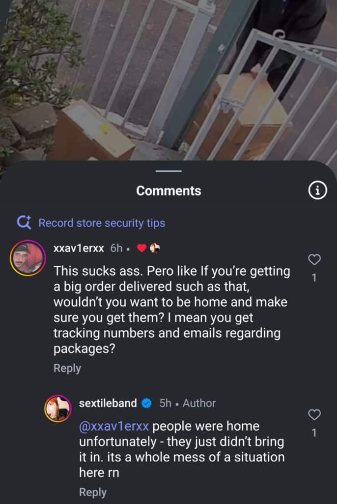 The band responding to a IG comment on why the delivery wasn’t retrieved sooner.