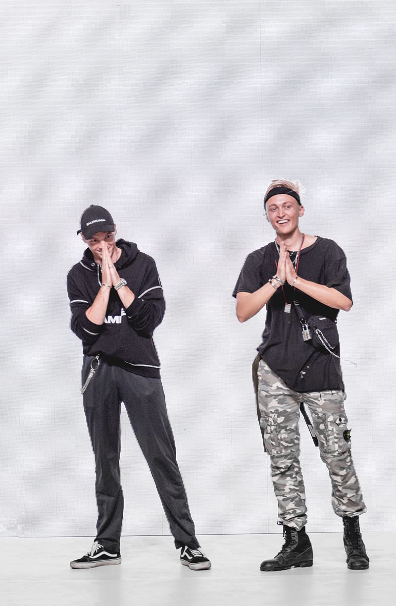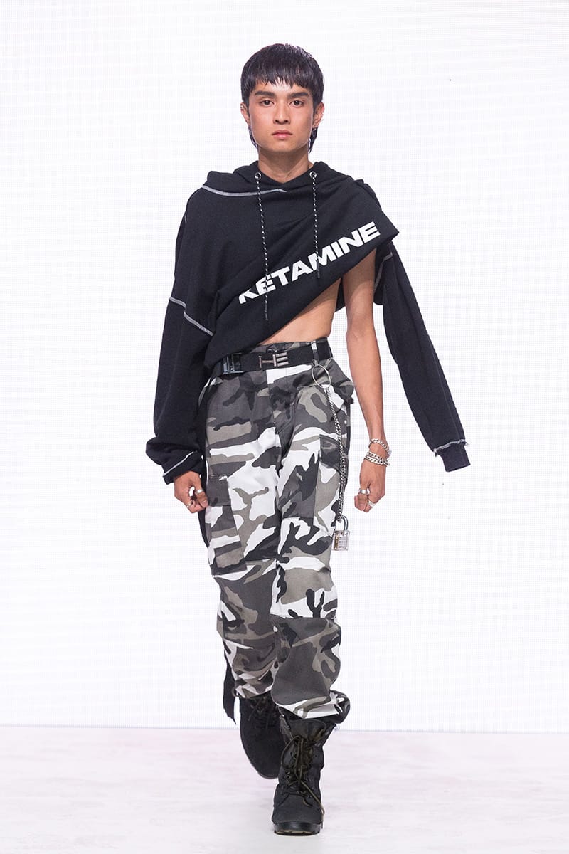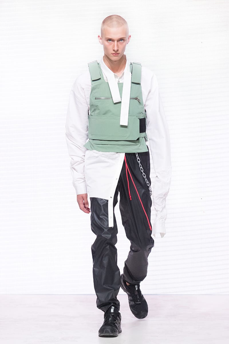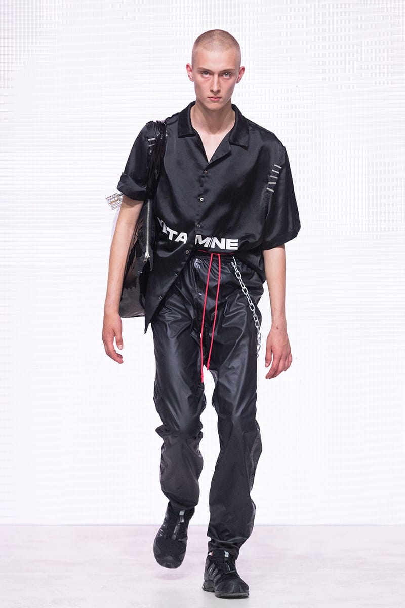 “Heliot Emil Spring/Summer 2018 collection is titled “P .T .C .S.” short for post traumatic combat stress. The collection follows the aesthetic of an individual dealing with a postwar existential crisis, resulting in experimentation with a combination of drugs and parties. Designer Julius Juul mixed the formality and discipline of the military with the carefree attitude of a lost mind. Combining various fabrics and sewing techniques gives this collection a truly unique look.” – FY Magazine.es