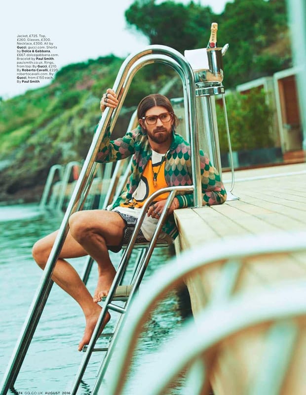 “Supermodel Henrik Fallenius stars in Away Daze story captured for British GQ Magazine‘s August 2016 edition by fashion photographer Philippe Vogelenzang. For the session stylist Luke Day selected looks from brands such as Louis Vuitton, Gucci, Valentino, Roberto Cavalli, and Dolce & Gabbana to name a few. Casting direction by Paul Isaac. Grooming by Ben Jones.” – Malemodelscene.net