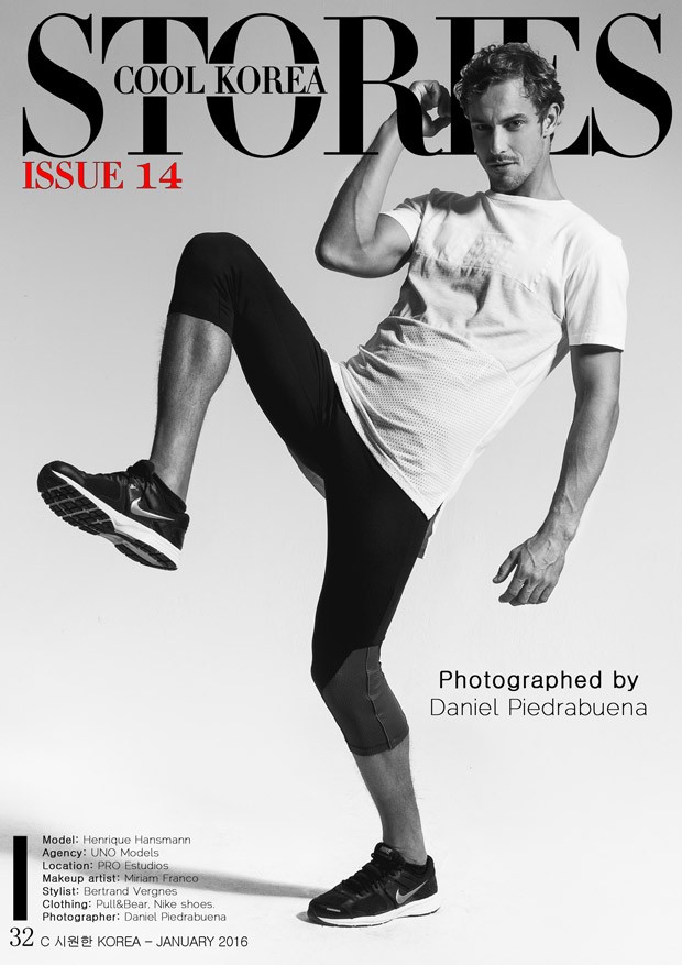 “Brazilian model Henrique Hansmann lands the cover story of Cool Korea‘s January 2016 edition captured by fashion photographer Daniel Piedrabuena. Styling is work of Bertrand Vergnes, with makeup by Miriam Franco.” – Malemodelscene.net