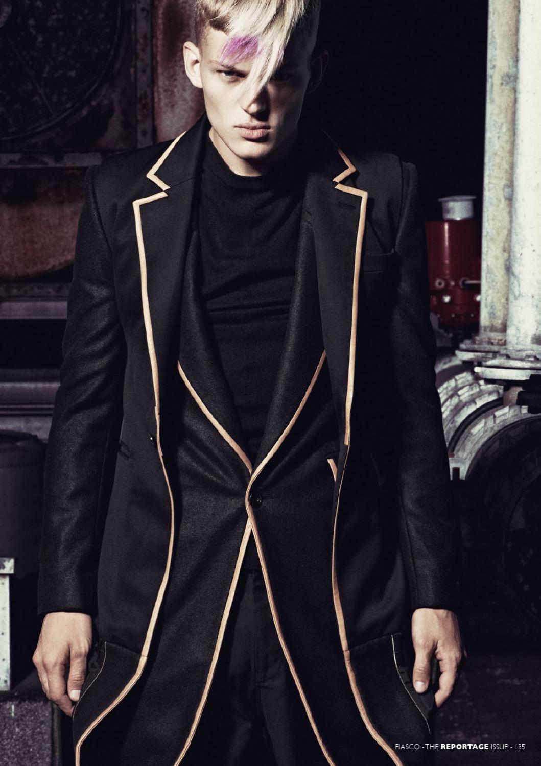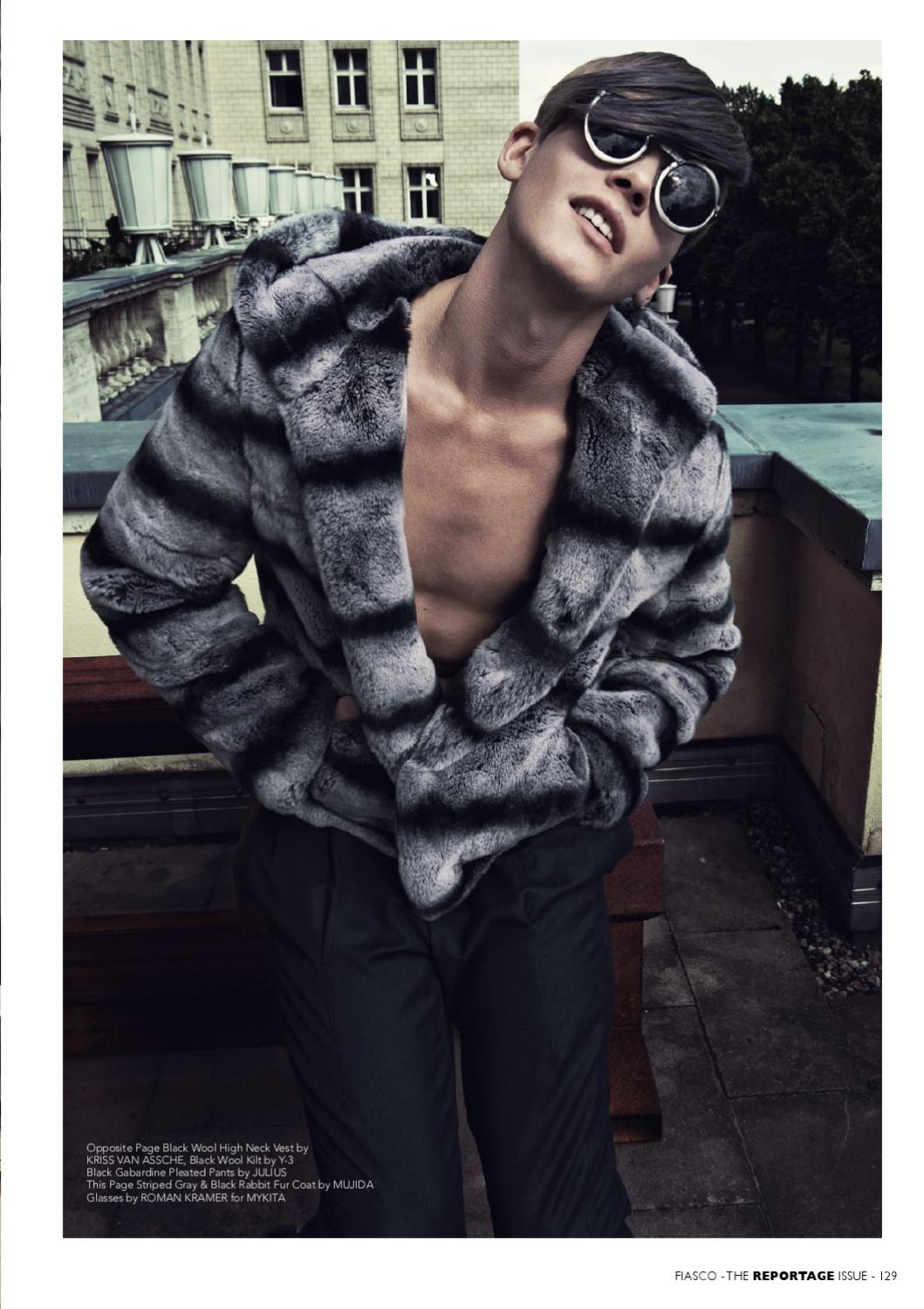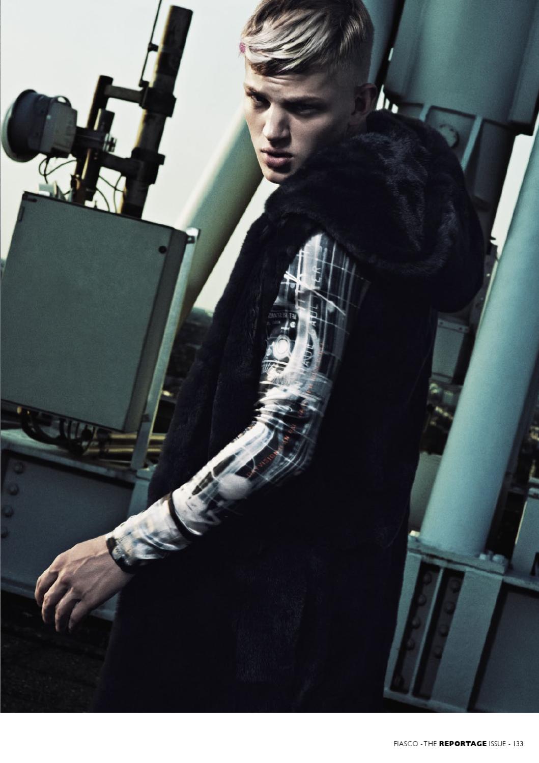 Sebastian Sauve appears on the cover of Fiasco’s sixteenth issue and was shot by Alfredo Albanesi for the cover and following cover shoot alongside Sidney Wolf. Synthia Van Sweetie styles the duo in neo-anarchist-esque fashions with pieces from Kris Van Assche, Y-3 and Julius. Courtesy of – hommemodel.blogspot.com