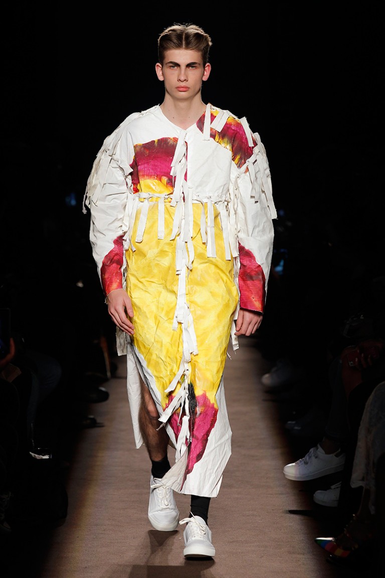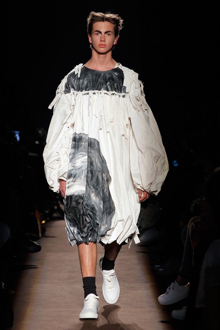 “Marta Gonçalves and Gonçalo Páscoa presented their Fall/Winter 2016 collection for HIBU during PortugalFashion. This collection aims to deconstruct the conventional wardrobe and push it by erasing the idea of what a garment should look, how it should be manufactured and how it should be worn.” – FY Magazine.es