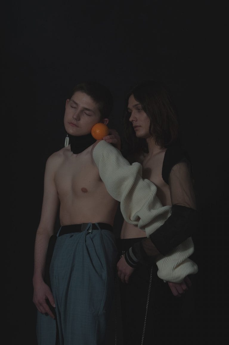 “Rory Griffin at Anti Agency and Tom Kindon photographed by Klaudia Liboska and styled by Mitja Olenik with pieces from Comme des Garçons, Tara Lee, Blitz London, Marni, JW Anderson, Maison Margiela, Marie Maisonneuve, DKNY, Dries Van Noten and more, in exclusive for Fucking Young! Online.