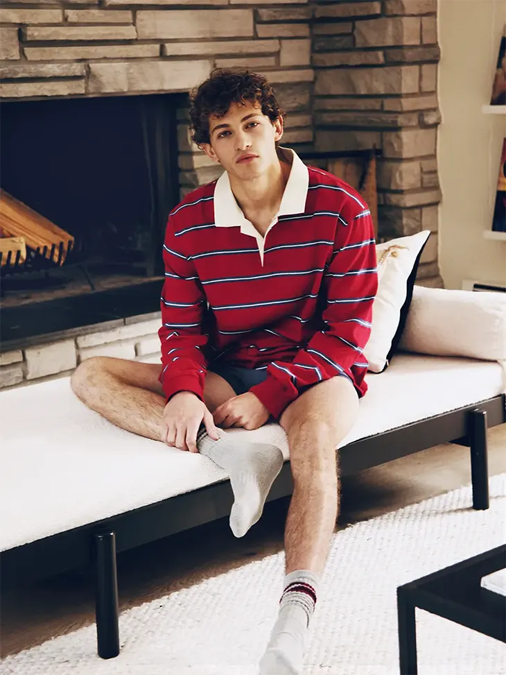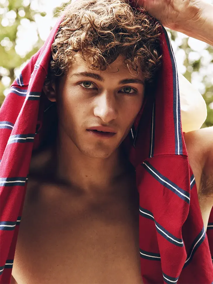 Curly and cute as a button, Anthony Piccirillo models the cozy, comfortable look—effortlessly blending softness with editorial edge.