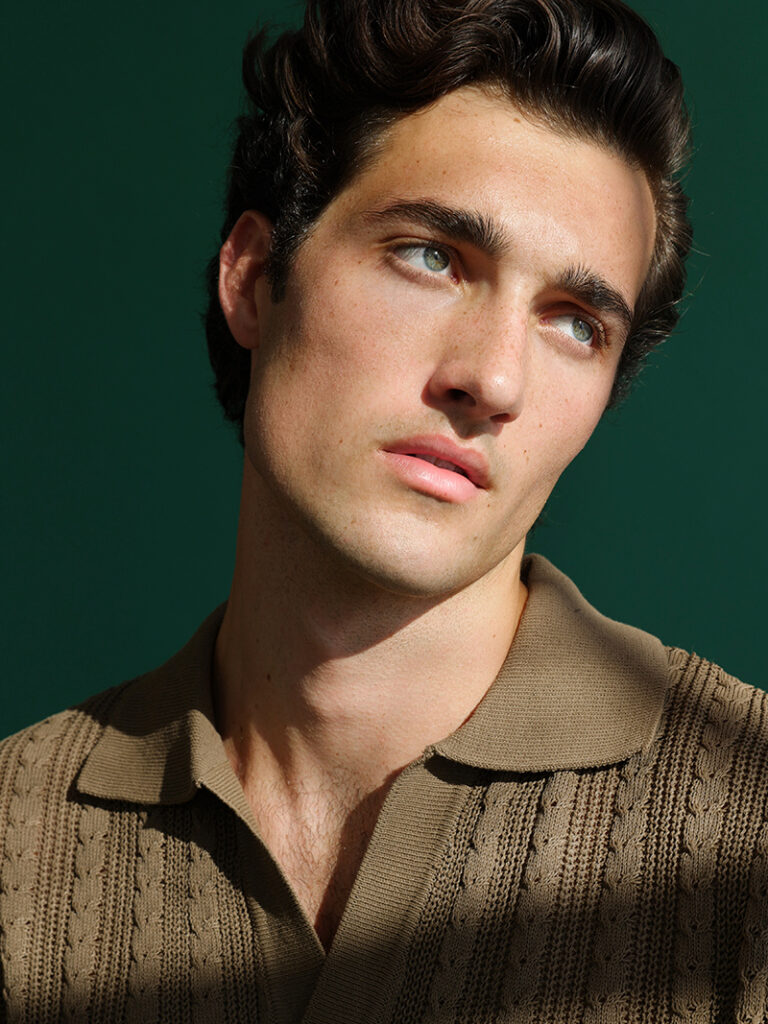 With a gaze that channels vintage cinema and a silhouette that nods to timeless tailoring, Adam Sattrup brings a quiet magnetism to the frame. The styling—elegant, deliberate, and emotionally textured—echoes Szopik’s signature mentorship: bold yet restrained, expressive yet editorially sharp.