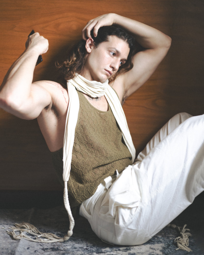 Shot by photographer Tommaso Aprilino, the series leans into minimal styling, soft light, and a clean visual palette that lets Gabriele’s features do all the talking.