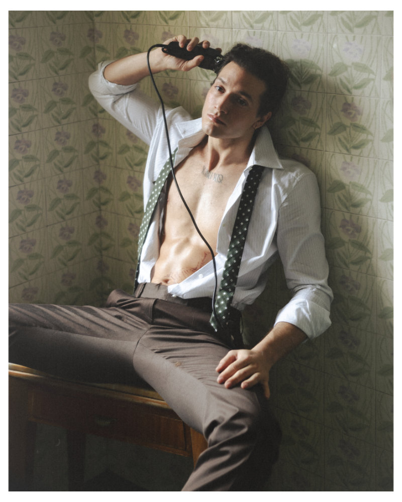 Gabriele Esposito steps into a bold new look in a clean, sculptural portrait session shot by photographer Tommaso Aprilino.