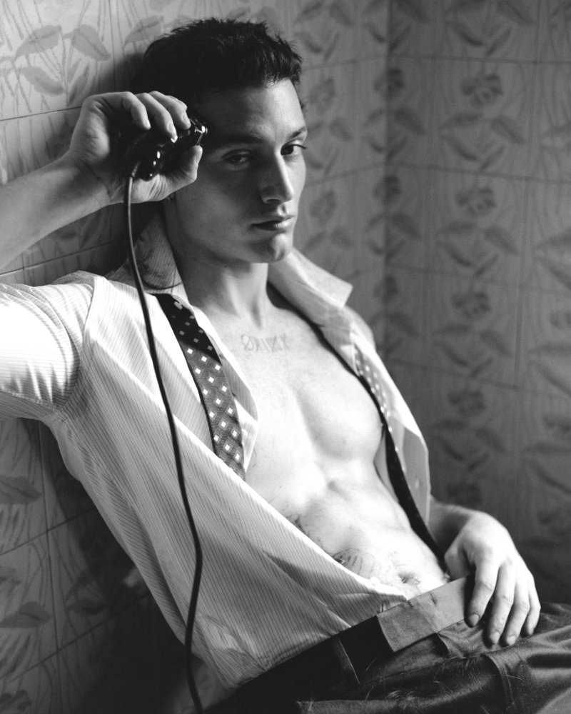 For his latest feature with FY Magazine! Online, Gabriele goes completely bald, revealing a sharp, sculptural look that highlights his bone structure and expressive presence in front of the camera.