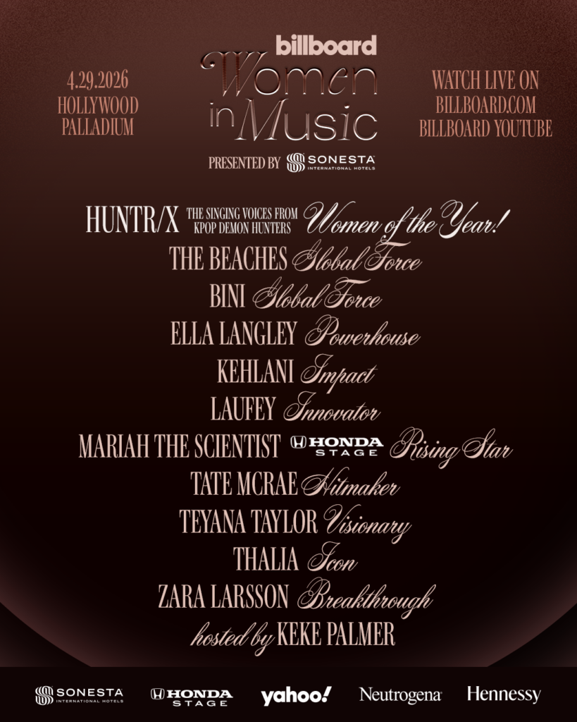 As we reported earlier, this year’s honorees include KPop Demon Hunters — the global phenomenon led vocally by EJAE, AUDREY NUNA and REI AMI — who will receive the 2026 Women of the Year Award. The trio leads a wide-ranging class that also includes Zara Larsson, Teyana Taylor, Tate McRae, Kehlani, Laufey, Thalía, BINI and more.