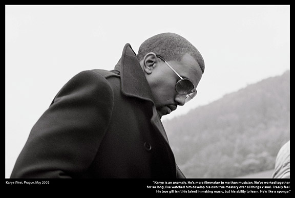 Not only has Hype directed many of Kanye West’s music videos, but he also wrote the script for Yeezy’s 20-minute “Runaway” masterpiece. This still of Ye in his peacoat popped collar and a delicate pair of aviators illustrates the pensive, thoughtful Kanye we know and love.