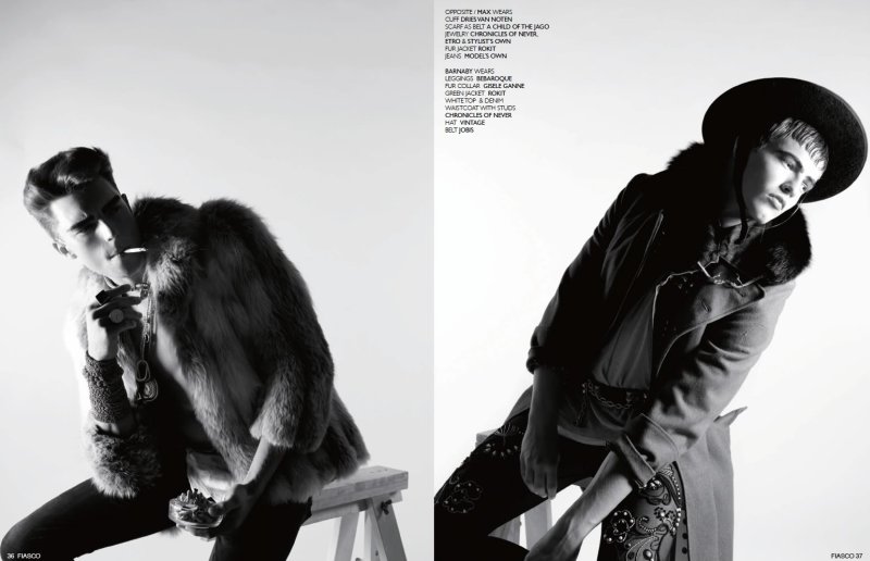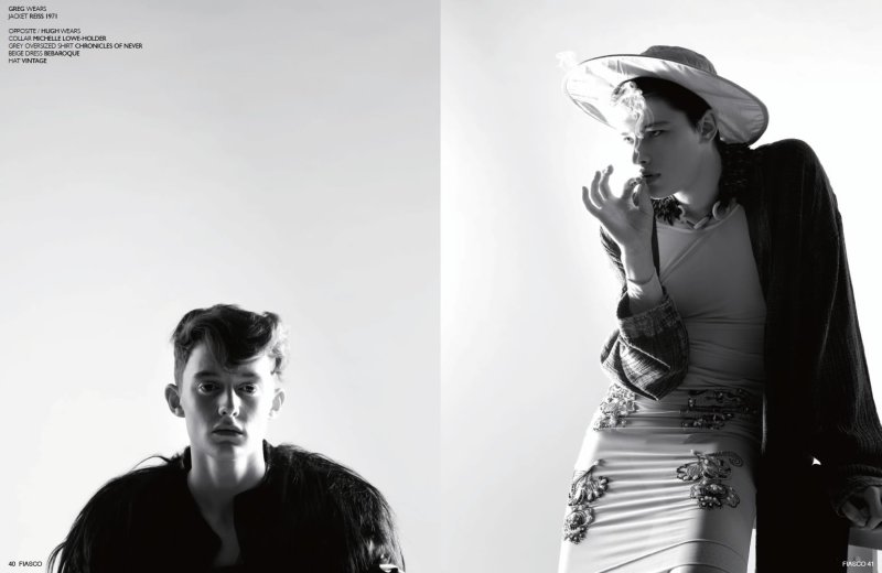 With a new issue of Fiasco magazine quickly approaching, we take a final look at the Teen Freedom issue. Combining drama and the eccentric for an offbeat spread entitled I Am Here, Louis Park photographed Aaron Frew, Dan Felton, Jazz Jamieson, Hugh Vidler, Greg (Next London), Max Cocking, Harry Wakefield and Barnaby Dunn for a black and white feat styled by Hope von Joel. – Courtesy of thefashionisto.com