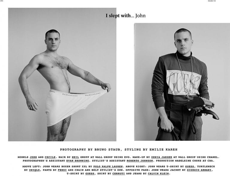 “John Wood photographed by Bruno Staub and styled by Emilie Kareh, for the latest issue of Double magazine.” – FY Magazine.es