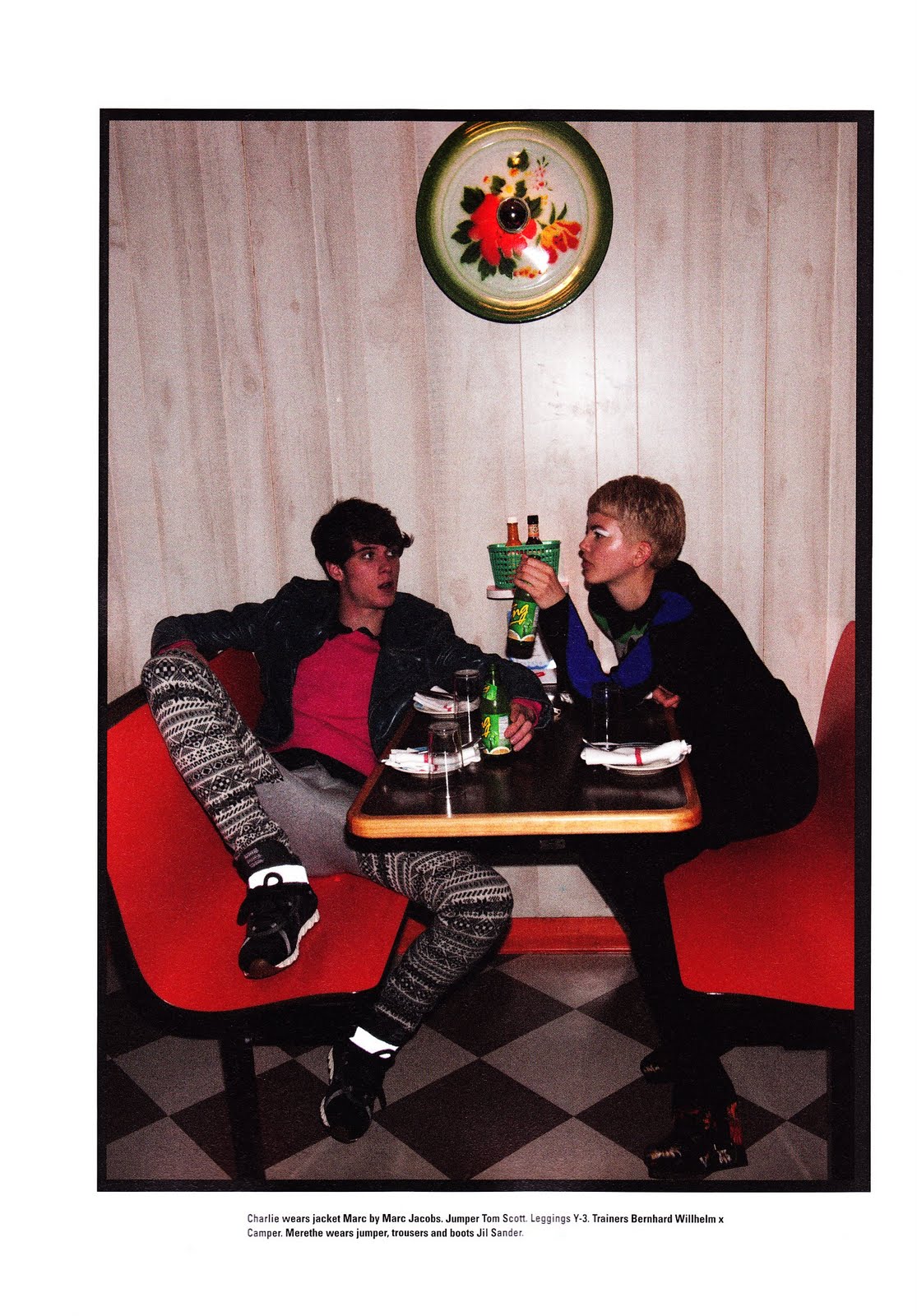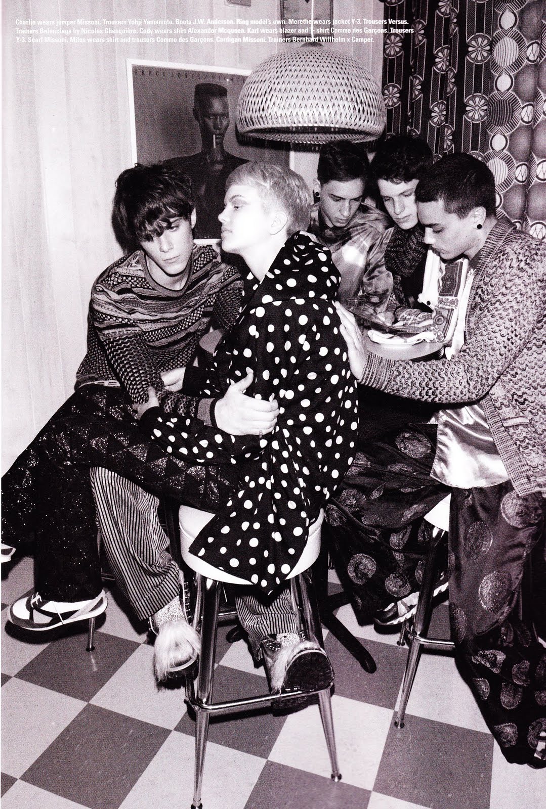 With school about to start, i-D employs an array of models for this shoot by Walter Pfeiffer and David Vandewal surrounding on the idea of young love and teenage love affaitrs, with male models wearing youthful designs from Dries Van Noten, Alexis Mabille, and Junya Watanabe, to name three.
