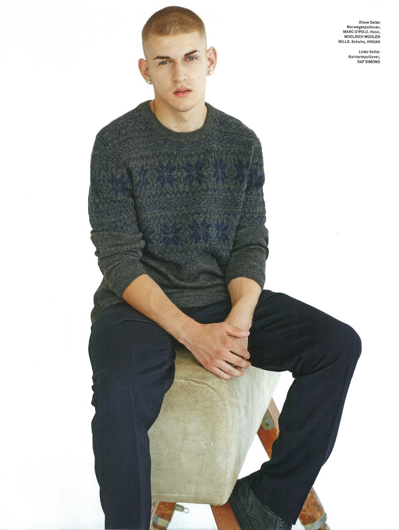 A Knitted Affair–All wrapped up in cozy knits, Select models Igor and Jordan showcase fall must-haves in the new issue of GQ Style Germany, photographed by Bruno Staub with styling by Klaus Stockhausen. Courtesy of – thefashionisto.com