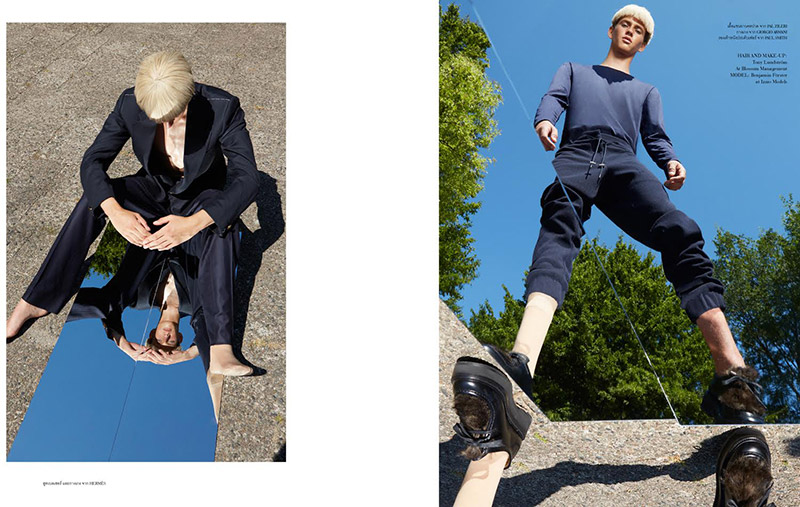 “Benjamin at Izaio Management photographed by Dan Beleiu and styled by Bodo Ernle, for the December 2015 issue of Elle Men magazine. Hair & Make-up: Tony Lundstrom.” – FY Magazine.es
