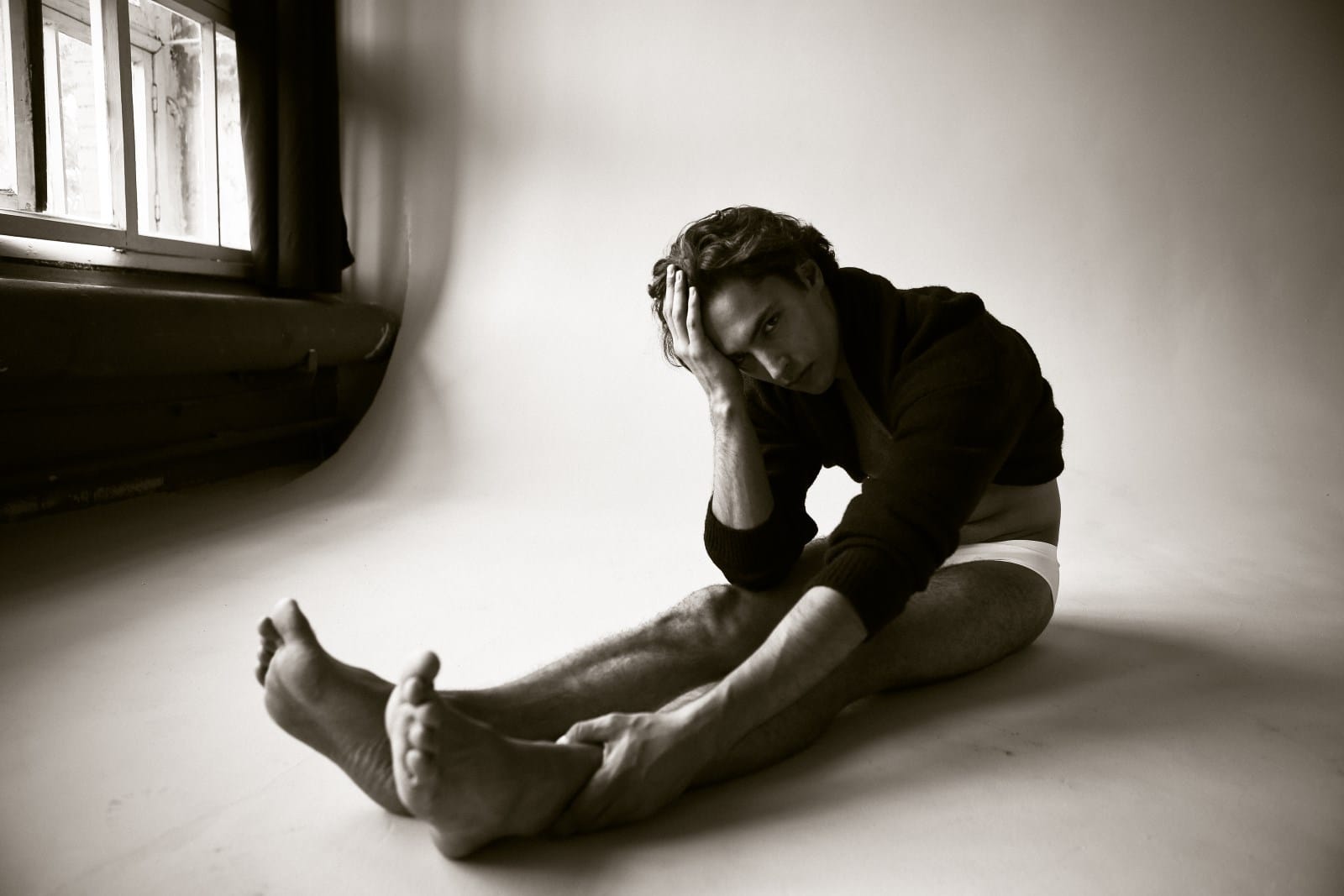 “Ilya Philipsky at Modus Vivendis Model Management, Moscow is photographed by Nicholas Efimtcev in a black and white sensual studio shoot featuring pieces from YSL, Gosha, CK, Danil Landar, Givenchy a…
