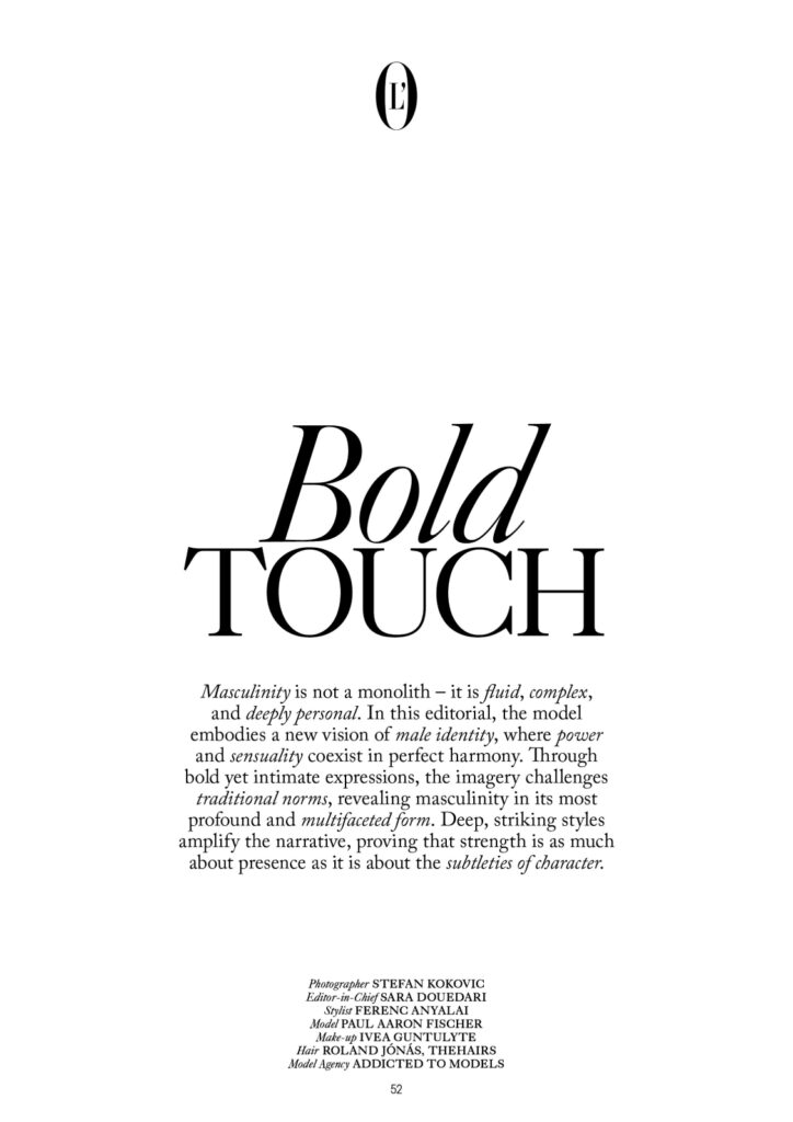 In “Bold Touch,” Austrian model Paul Aaron Fischer takes center stage for L’Officiel Hommes Austria, commanding the spotlight with magnetic poise.