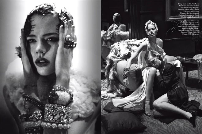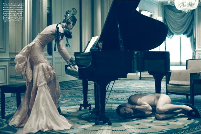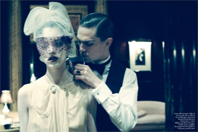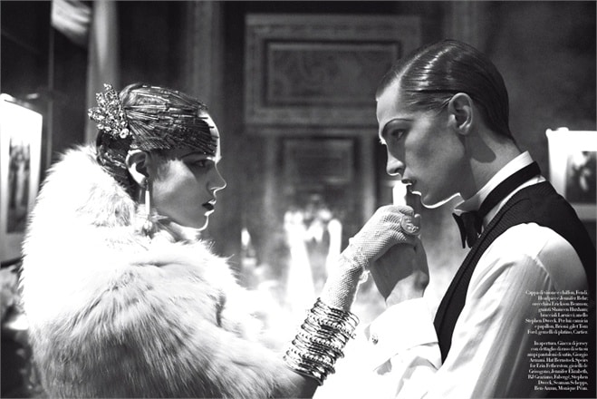 ‘Steven Meisel vividly paints a turbulent relationship in ‘In Grand Stile,’ the cover story for the March 2010 issue of Vogue Italia. Mathias Lauridsen and Freja Beha Erichsen play the passionate yet destructive couple.’ – Homotography