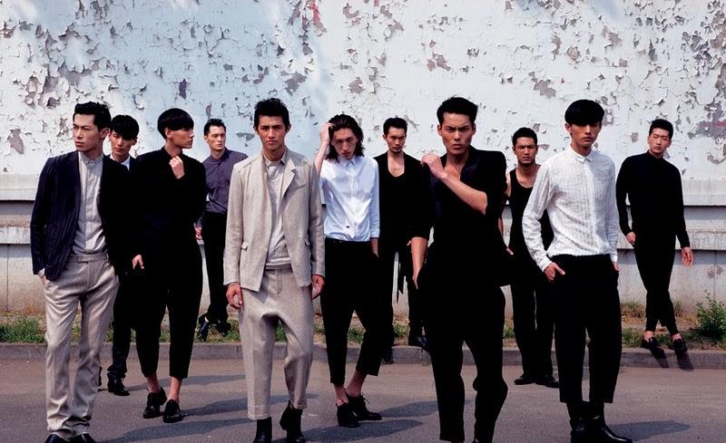Left to right: Jeffery Zheng, Xu Chen, Li Xiang, Chen Man Qiang, Daniel Li, Du Shibo, Nan Fu Long, Jerry Fu, Ken Gao, Liu Chang and Han Xu, Bejing, China. Photography by Victoria Tang and styling by Stinger Wong in Dior Homme SS11.