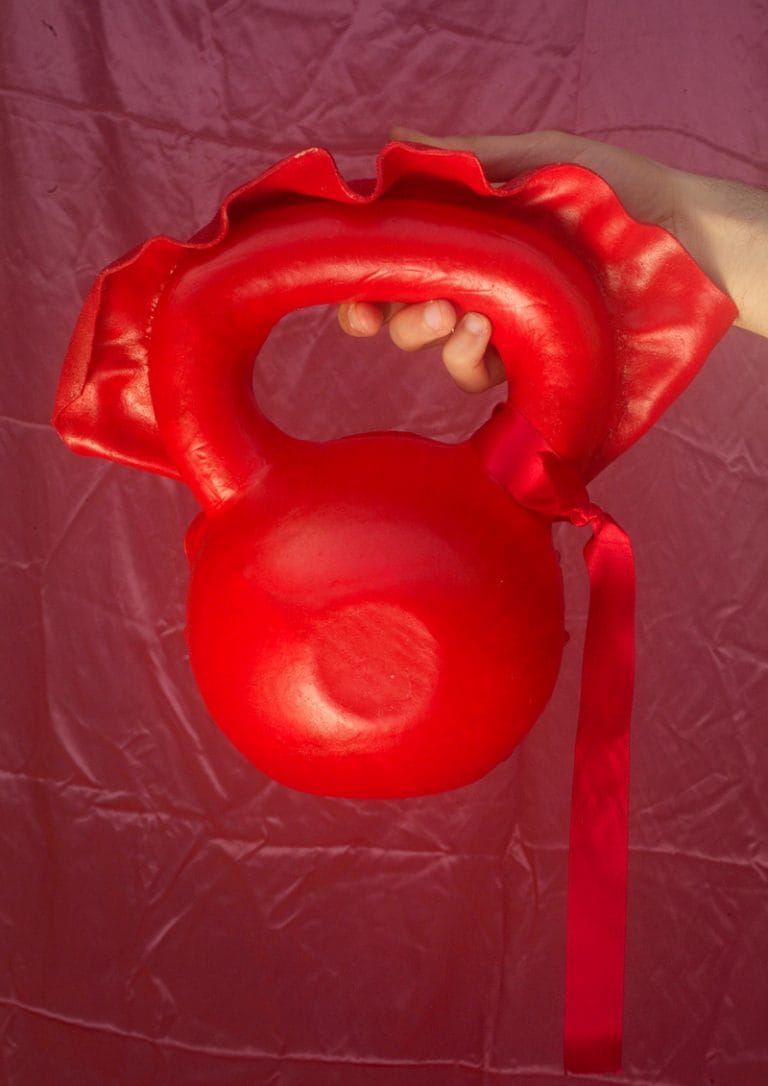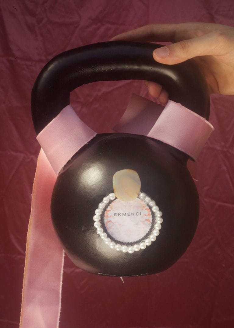 “Ali Ekmekci, a Turkish final year student at London College of Fashion collaborated with Najia Li Saad to shoot his pre-collection. Ekmekci was inspired by the relationship between the media and the working class to deconstruct the power relations depicted through news and late-capitalistic products as an effort to bring the consumer back to its nature. He collaborated with the final year accessories student Rachel Doerk to create the kettlebell bags.