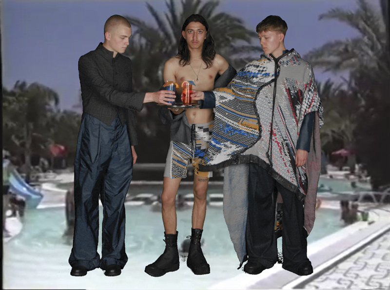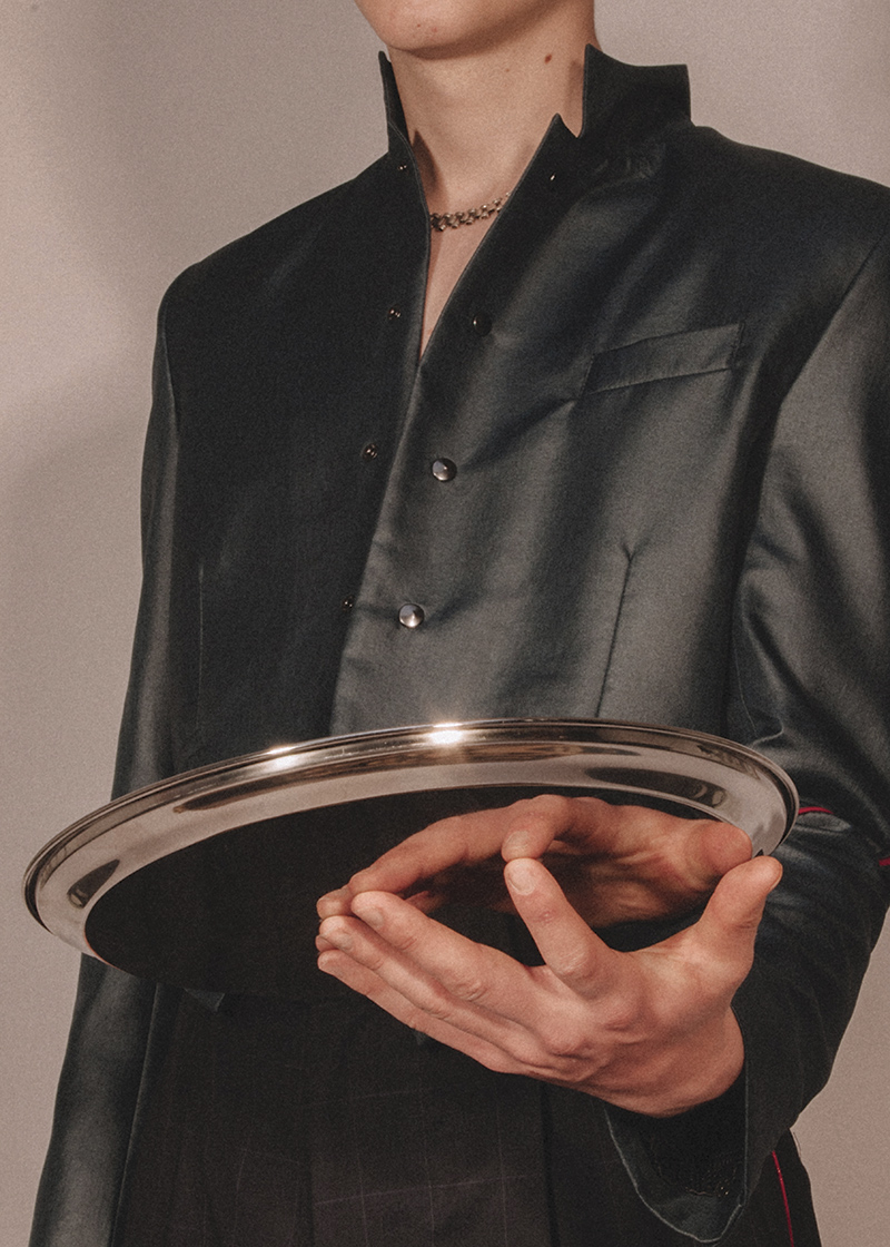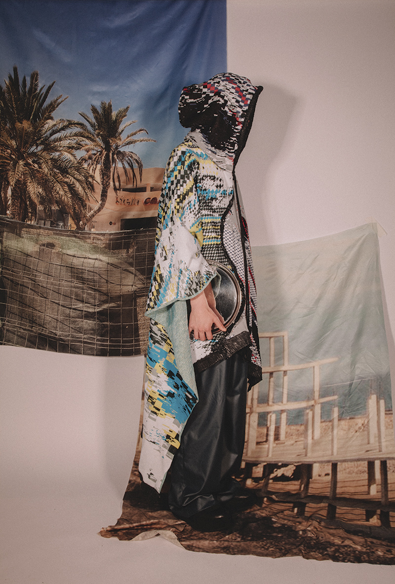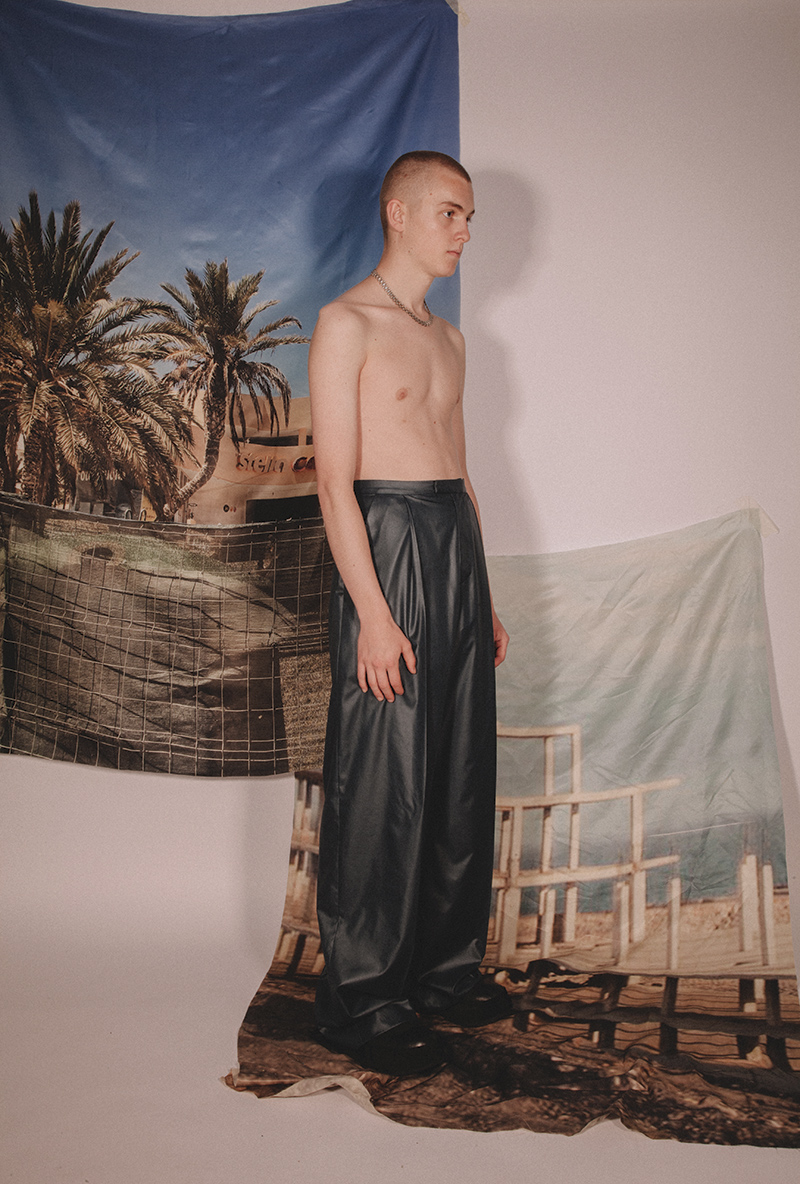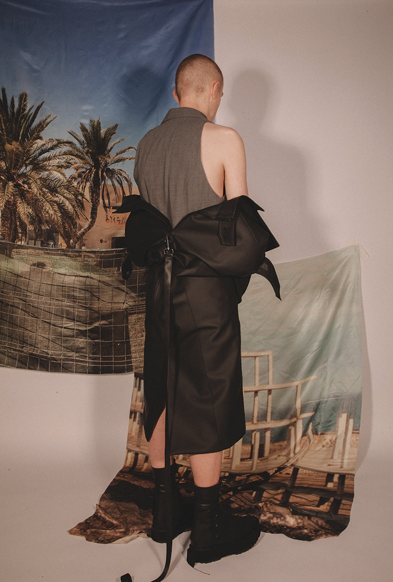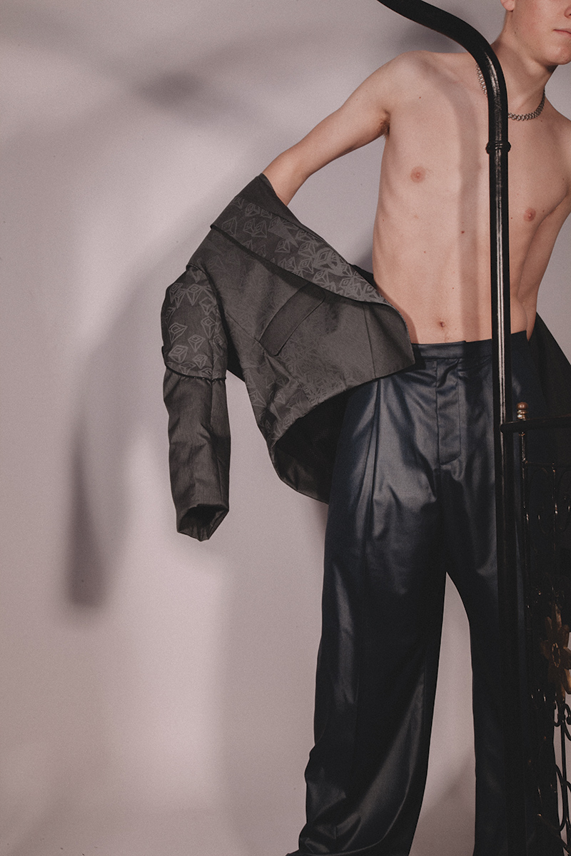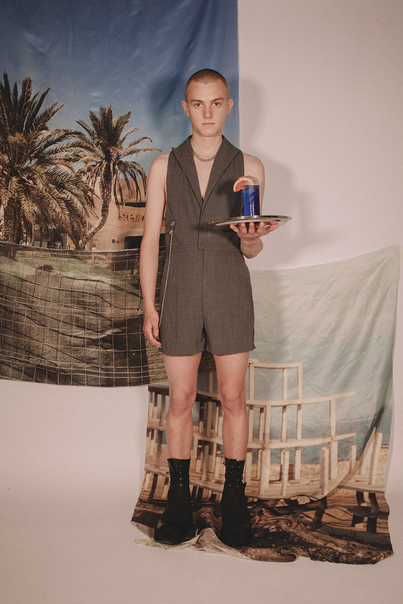 “Carolina De Juan Invernizzi, a Kingston School of Art alumni, unveiled her latest collection taking inspiration from her Italian and Spanish background and the idealization of home nostalgia. She looks for ways of shifting traditional menswear materials and silhouette by contrasting fabrications, proportions and constructions: tailoring meets sportswear; technical that looks fragile; soft that becomes structured…” – FY Magazine.es