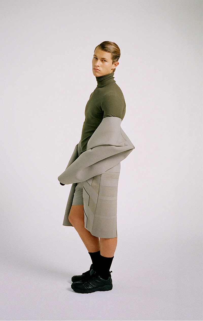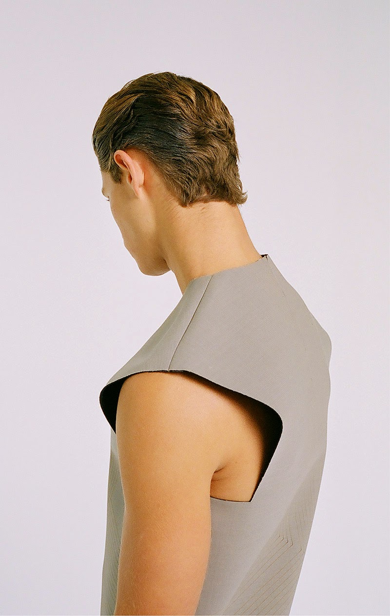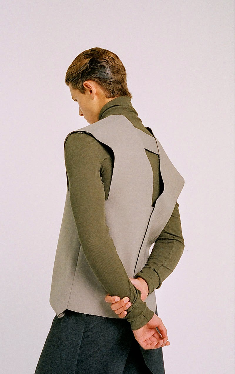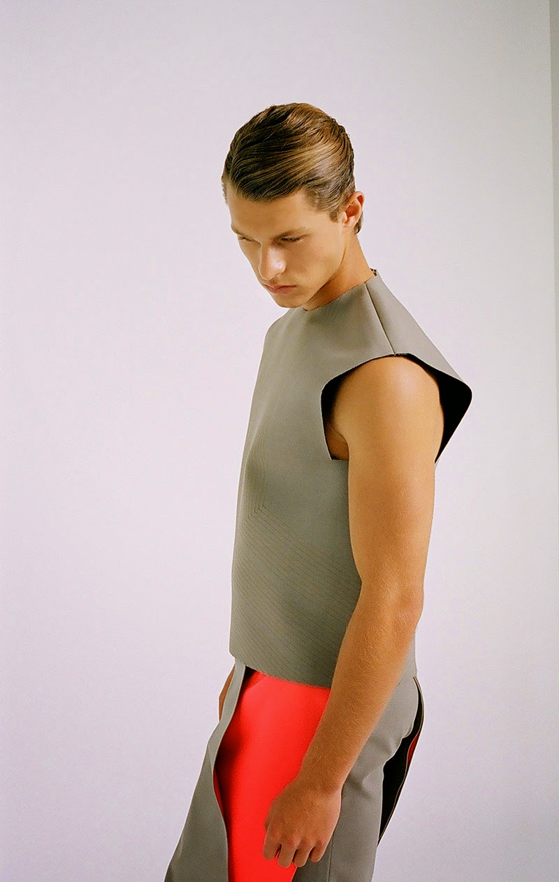 Donald Chung from the University of Technology (Sydney) presents his final graduate collection titled “RESIST & EXIST“. The collection is conceptually based around dress practice within North Korea. It is an enquiry into an isolated society that has not experienced modernity in the Western sense, and still relies heavily on propagandic representations of hypermasculinity, militarism and uniform. The sensibility is hard, precise and linear.