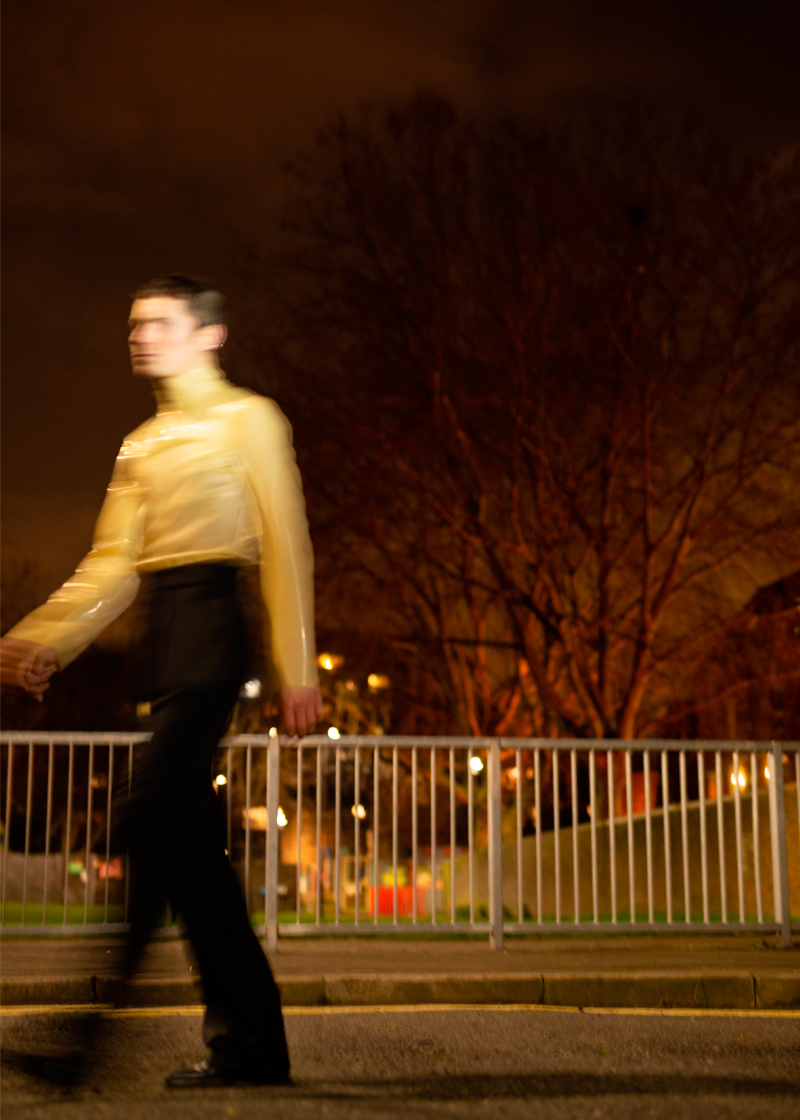 “In reflection of my personal experiences of Berlin’s subculture and nightlife, I wanted to create a collection, showing my point of view as a young gay man today” – said Eric. “In my research, I am referencing artist like Robert Mapplethorpe, or Prem Sahib, whose works were most relevant for gay culture in the early 70s and today. Also, Hal Fischer’s Gay semiotics, that shows the codes of dressing in queer culture was very relevant to my design process. Recently I have been to an exhibition in KW Berlin to see David Wojnarowicz, whose work was also very inspirational to me.