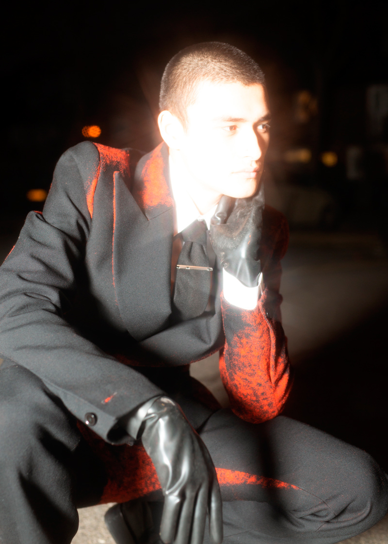 He created a lot of very personal artwork reflecting his role as a gay man in society, especially in his final days before passing away too early of Aids, his work got very dark and expresses his pain with the world. Simultaneously my collection was supposed to reflect this darkness in the severeness of the cut of the tailoring, the materials, prints, and styling. I intended to create a masculine, sexy, shape for the suit, but also the rest of the garments are rather tailored and fitted.