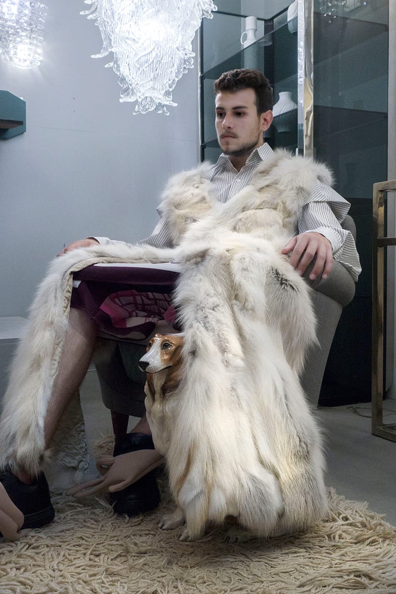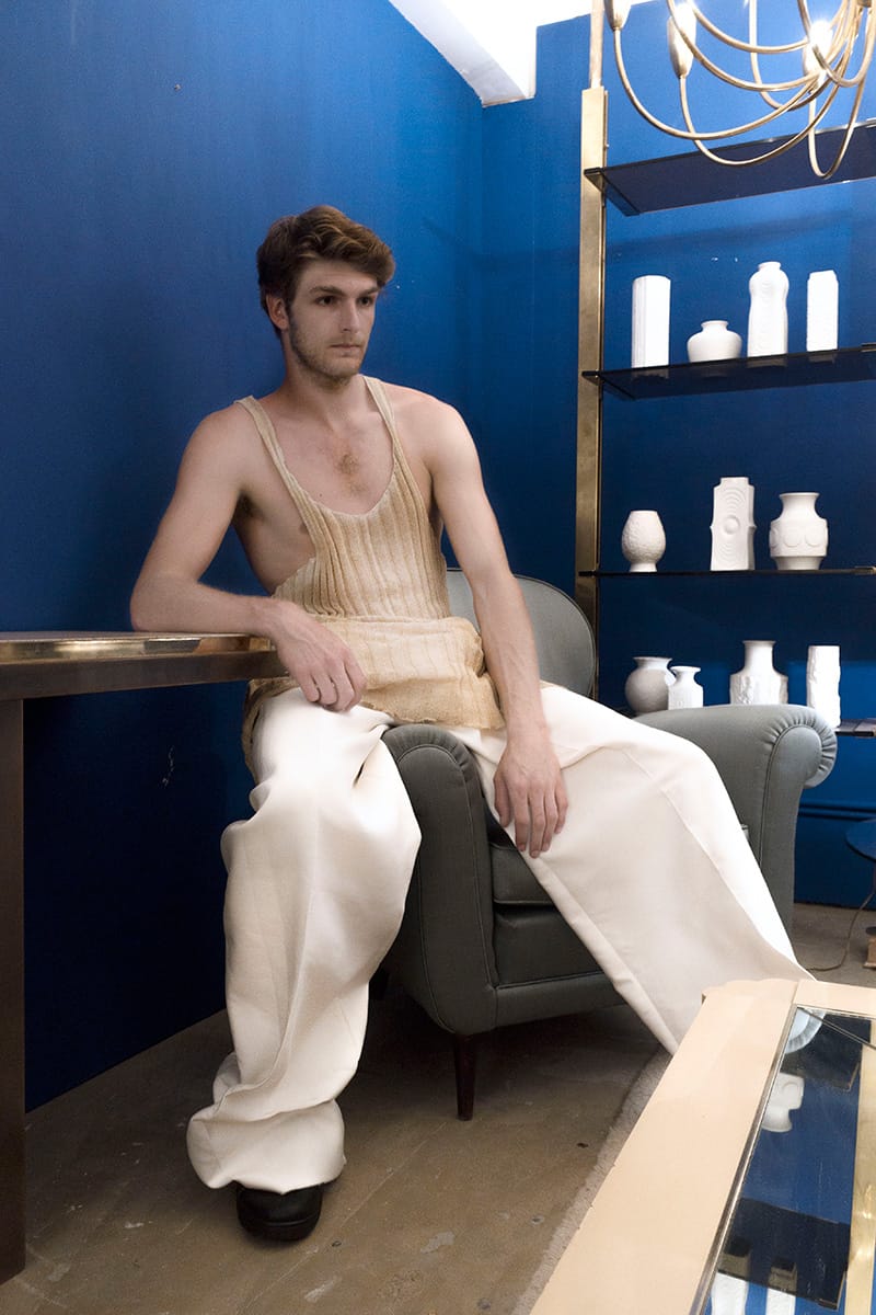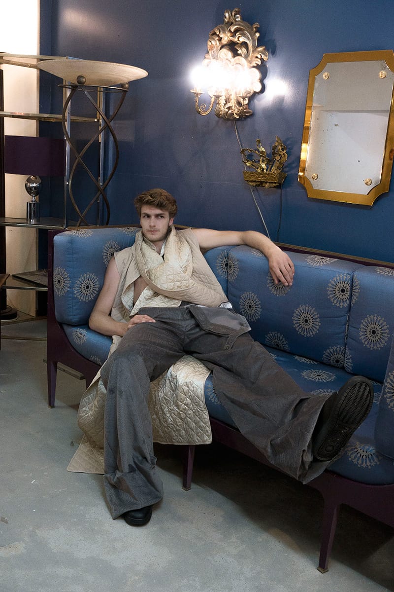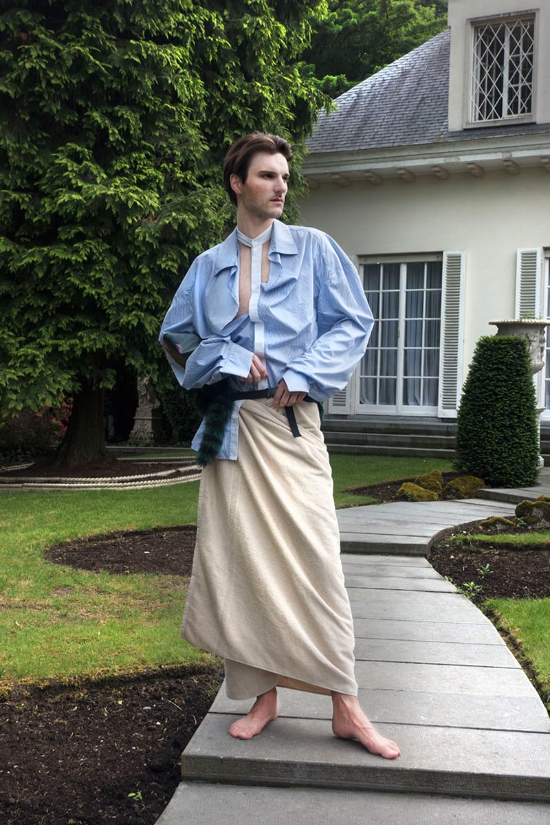“Louis Appelmans is a 3rd year Bachelor student at La Cambre (Brussels). This collection reflects the conservative and mainstream spirit of a current person combined with the originality and excitement produced by his fantasies. Through its anonymity a fetishistic and ostentatious universe exhibits the unhealthy or distracted thoughts of a young adult fairly current.
