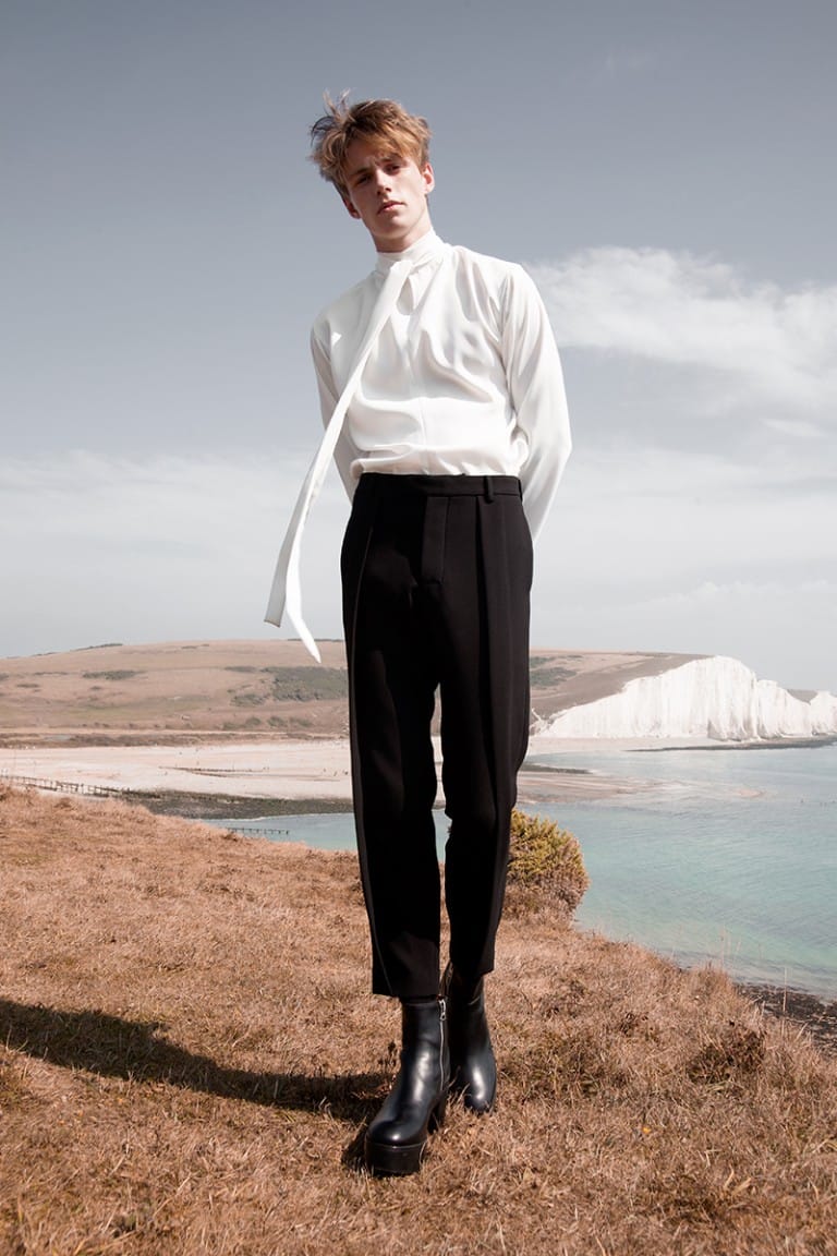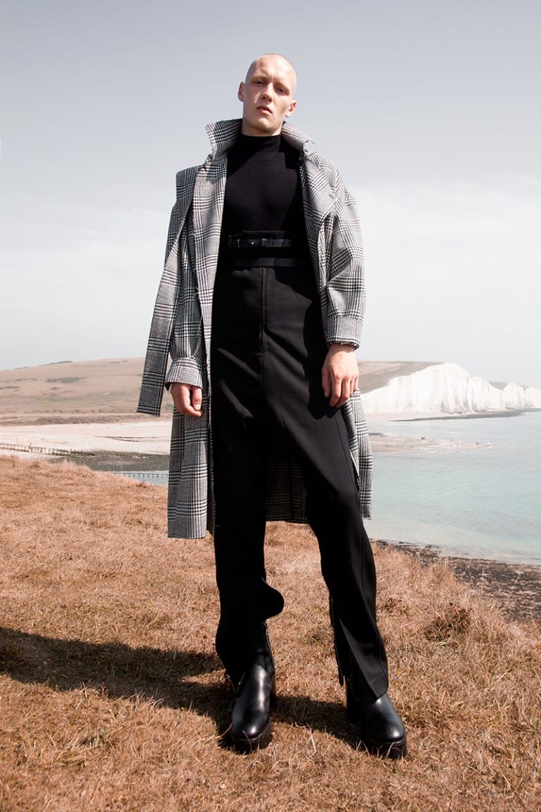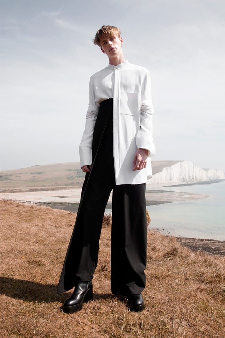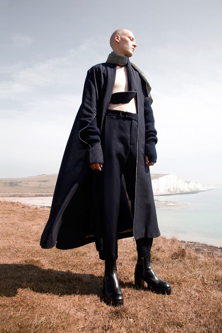 For FW16, the designer tried to design a renewed uniform; the manifestation of femininity set against the male form. Through the focus on silhouette and proportions, the collection takes inspiration from the motional relationship between body and clothes, drawing ideas from architectural sensibilities, such as negative space.